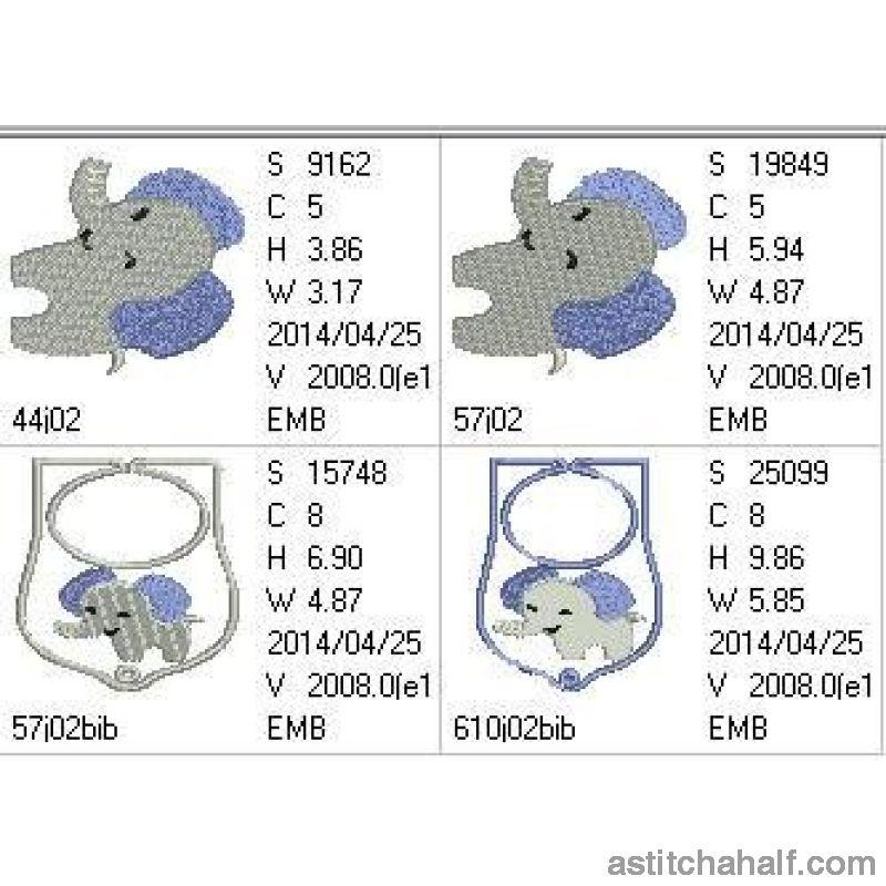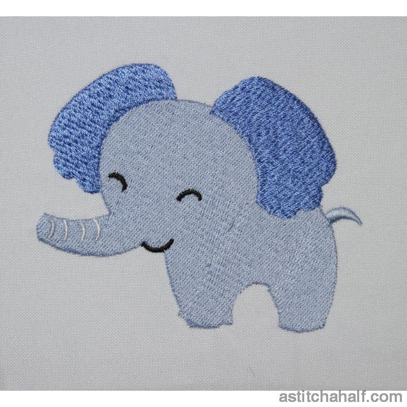 Adorn garments, quilted blankets and more with this embroidered Jolly Jungle Elephant.