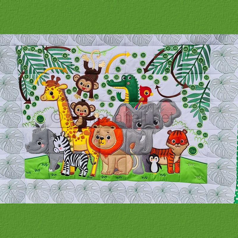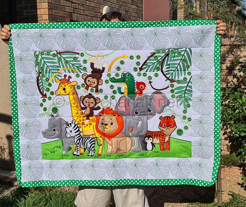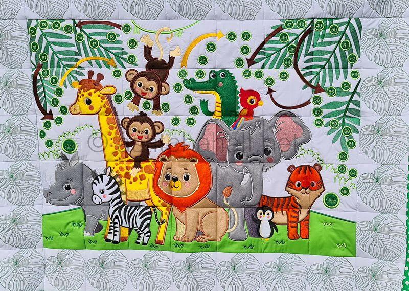 We have created a dream quilt with Super Cute Baby Animals like a Giraffe, Monkeys, Zebra, Lion, Rhino, Parrot, Penguin, Crocodile, Elephant and Tiger. Enjoy making this Quilt in 3 Unique Sizes.
