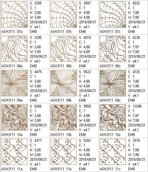 8*8 hoop designs x 11 (stitch count = 6285 - 18,734)