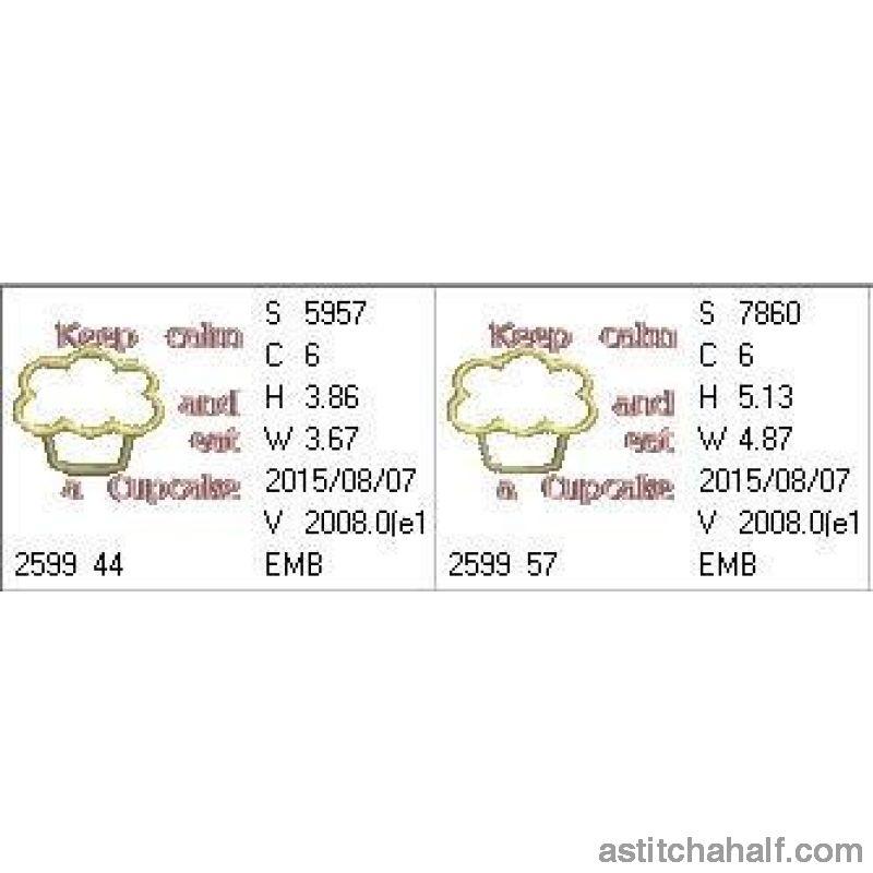 Your "Keep Calm and Eat a Cupcake" applique design to help you see the bright side of life.