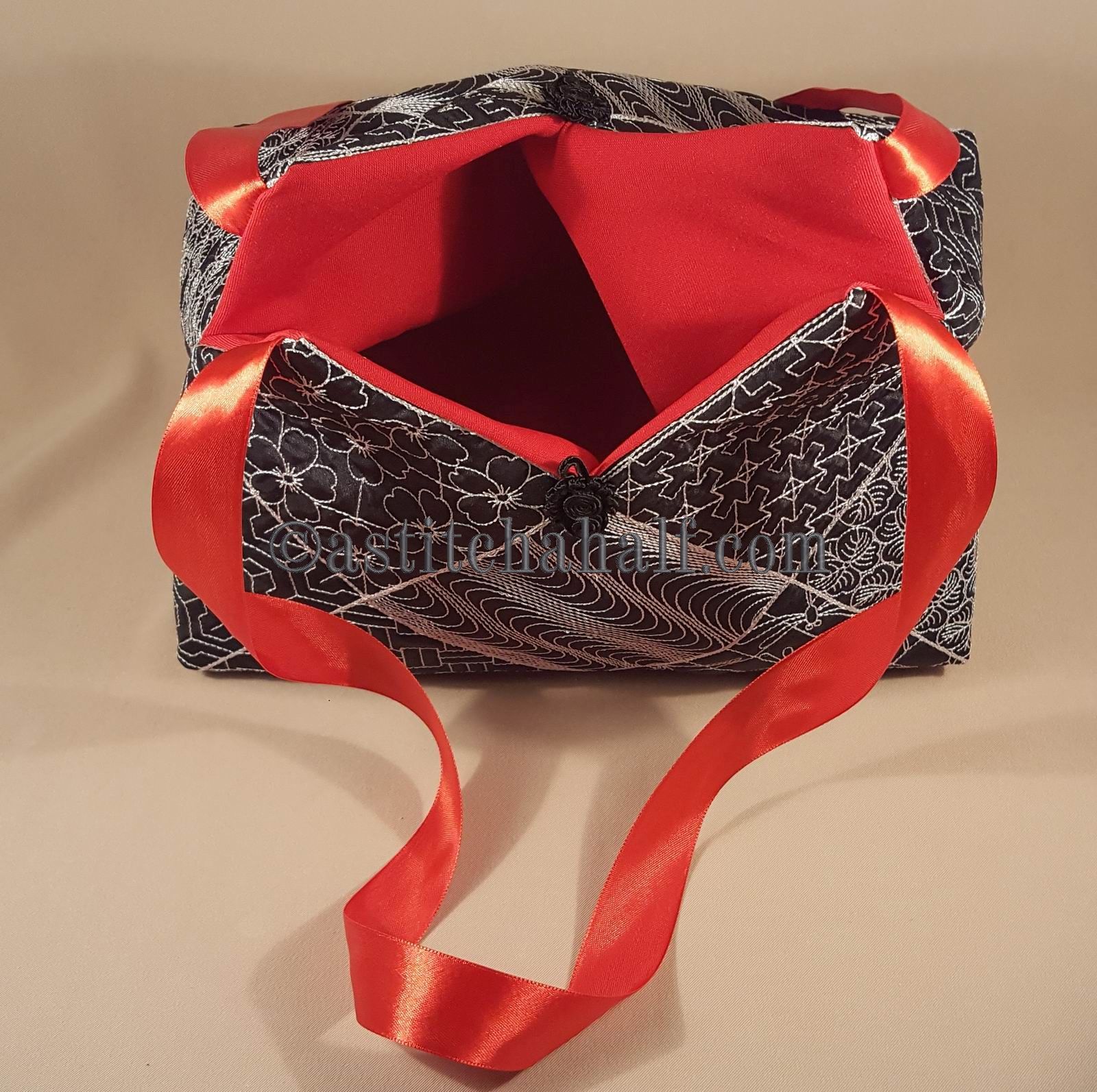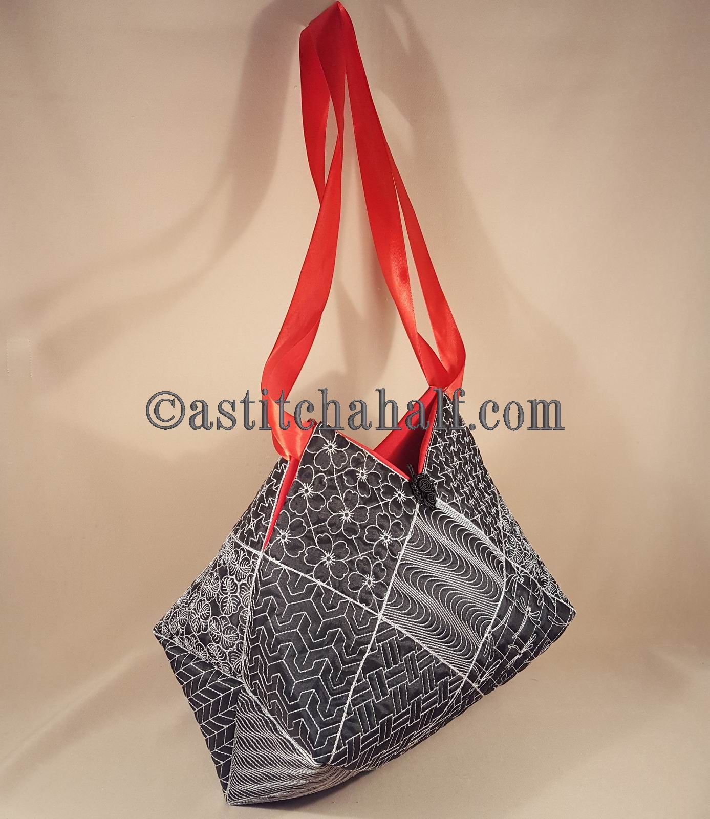 The Tote Bag using 4*4 Hoop designs will measure approx 12" high x 13" wide (a spacious yet elegant size bag)