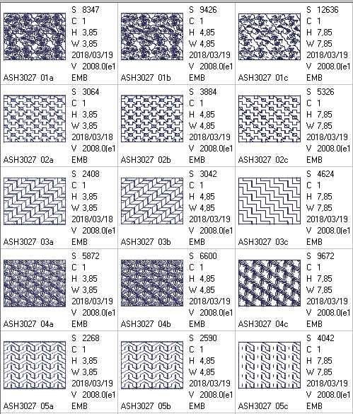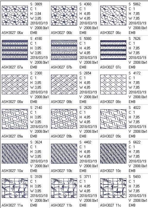 8*8 hoop designs x 11 (stitch count = 4022 - 12,636)