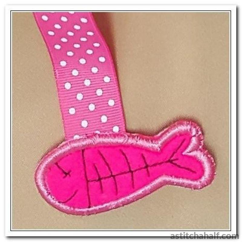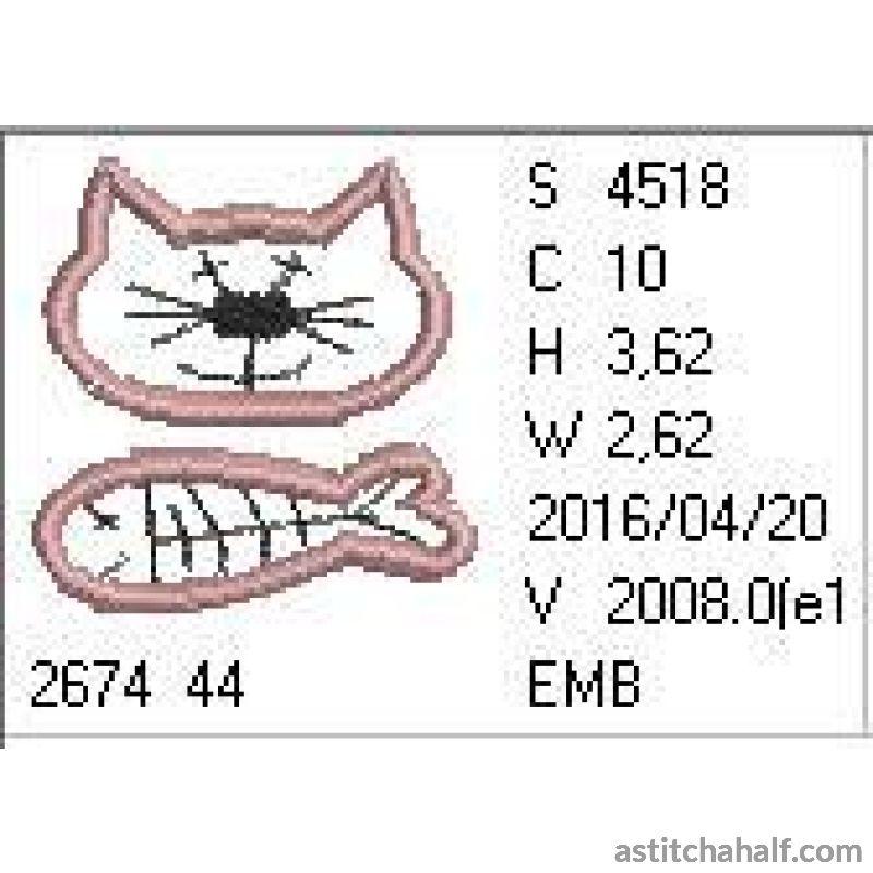 Kitty Bookmark is completed All In The Hoop. A ribbon is simply added in the hoop and the 2 sections are joined to complete the bookmark. A quick and easy project and wonderful gift to any Bookworm. Just look at this Photo Tutorial.