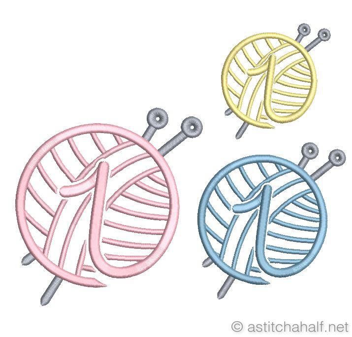 Embroider this Knitting Monogram Number on Fine Linen, a Napkin or Personalized Gift. Choose any one of the three letters to suit the occasion.
