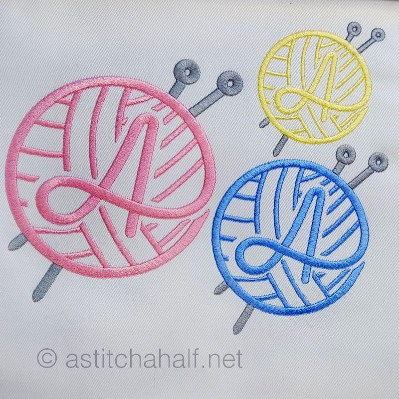 Embroider this Knitting Monogram Letter on Fine Linen, a Napkin or Personalized Gift. Choose any one of the three letters to suit the occasion.