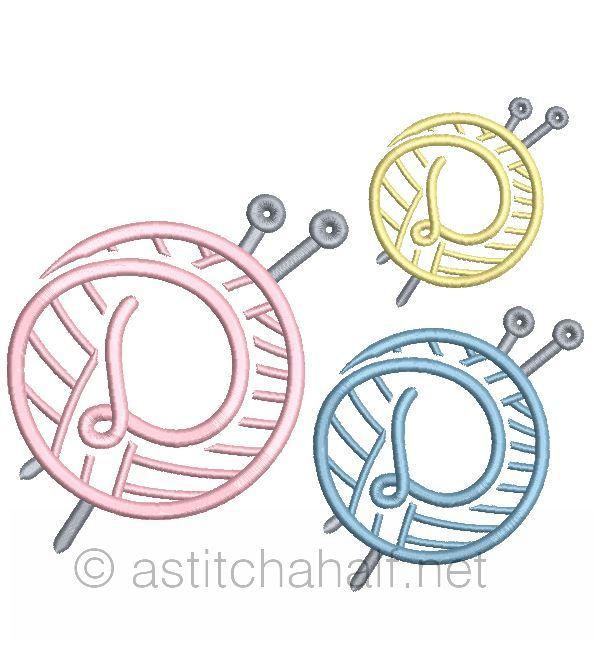Embroider this Knitting Monogram Letter on Fine Linen, a Napkin or Personalized Gift. Choose any one of the three letters to suit the occasion.