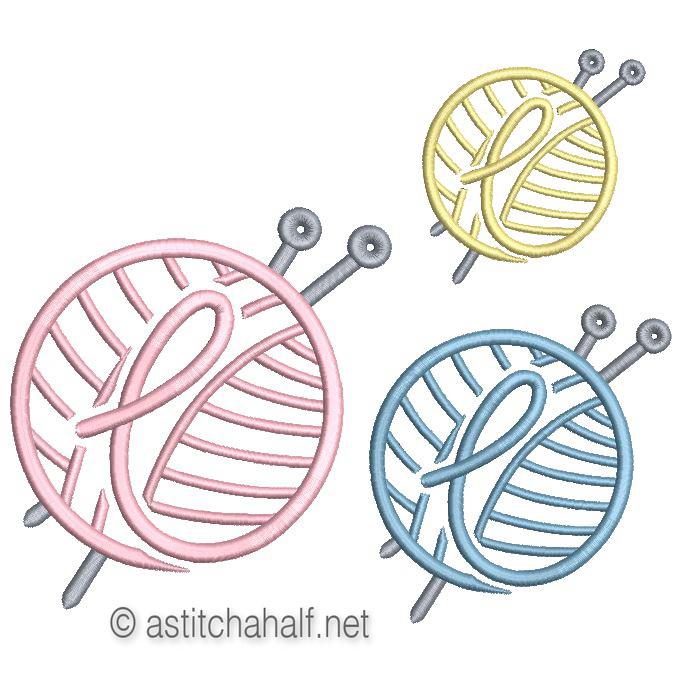 Embroider this Knitting Monogram Letter on Fine Linen, a Napkin or Personalized Gift. Choose any one of the three letters to suit the occasion.