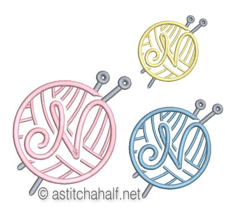 Embroider this Knitting Monogram Letter on Fine Linen, a Napkin or Personalized Gift. Choose any one of the three letters to suit the occasion.
