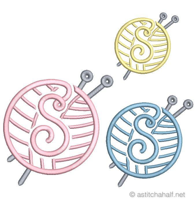 Embroider this Knitting Monogram Letter on Fine Linen, a Napkin or Personalized Gift. Choose any one of the three letters to suit the occasion.