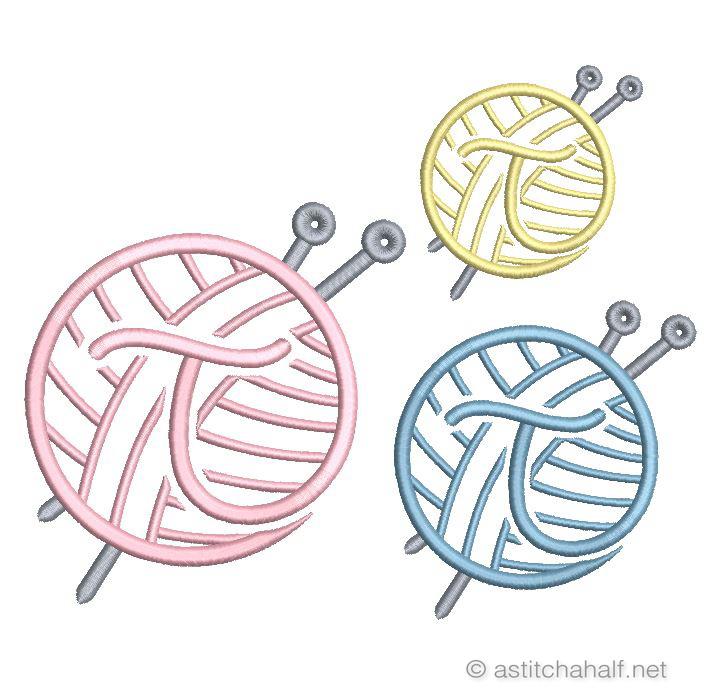 Embroider this Knitting Monogram Letter on Fine Linen, a Napkin or Personalized Gift. Choose any one of the three letters to suit the occasion.