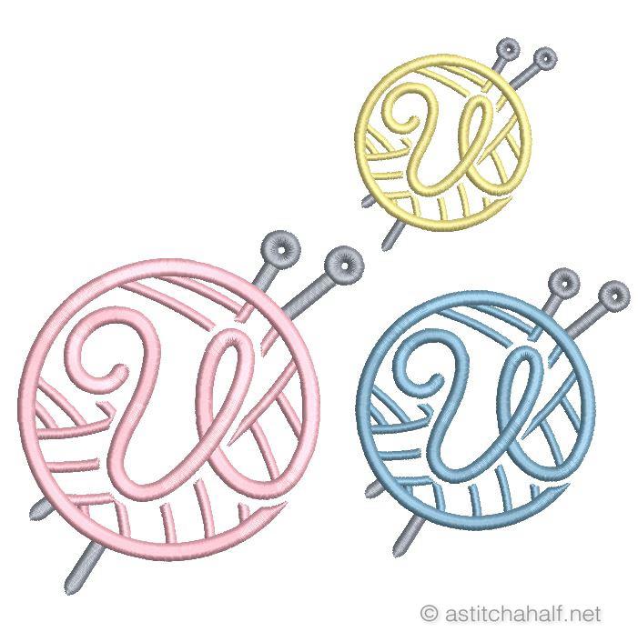 Embroider this Knitting Monogram Letter on Fine Linen, a Napkin or Personalized Gift. Choose any one of the three letters to suit the occasion.