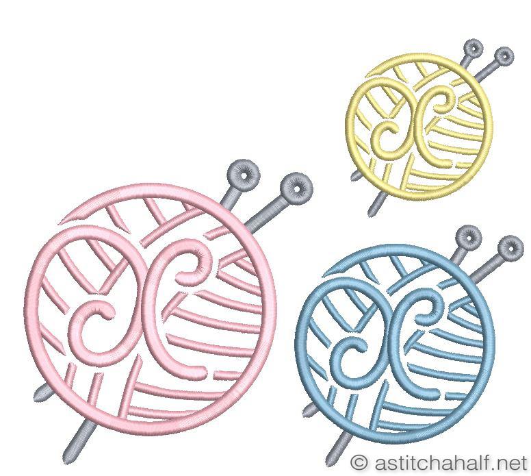 Embroider this Knitting Monogram Letter on Fine Linen, a Napkin or Personalized Gift. Choose any one of the three letters to suit the occasion.