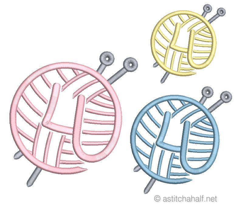 Embroider this Knitting Monogram Number on Fine Linen, a Napkin or Personalized Gift. Choose any one of the three letters to suit the occasion.