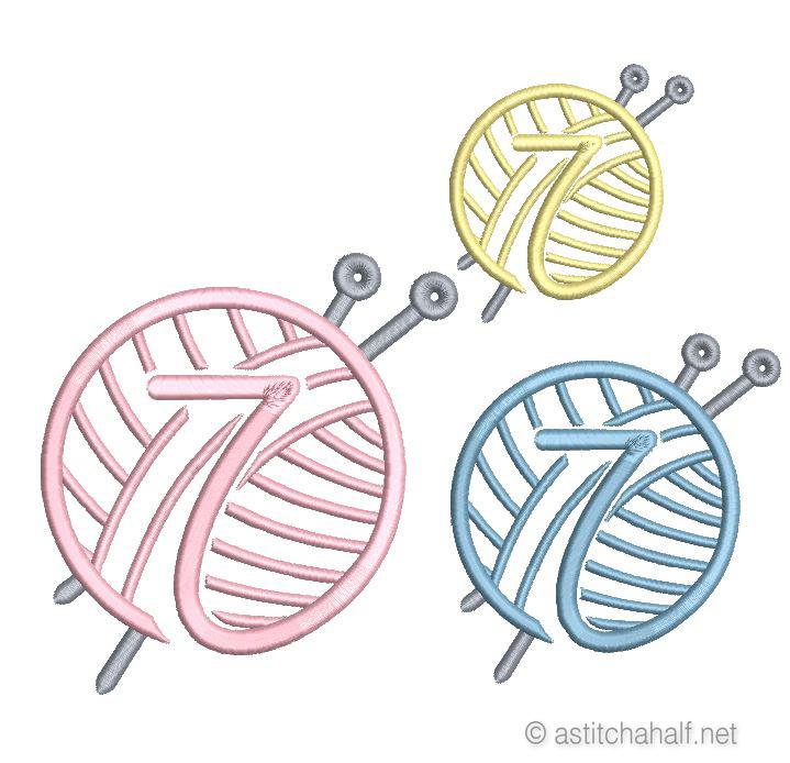 Embroider this Knitting Monogram Number on Fine Linen, a Napkin or Personalized Gift. Choose any one of the three letters to suit the occasion.