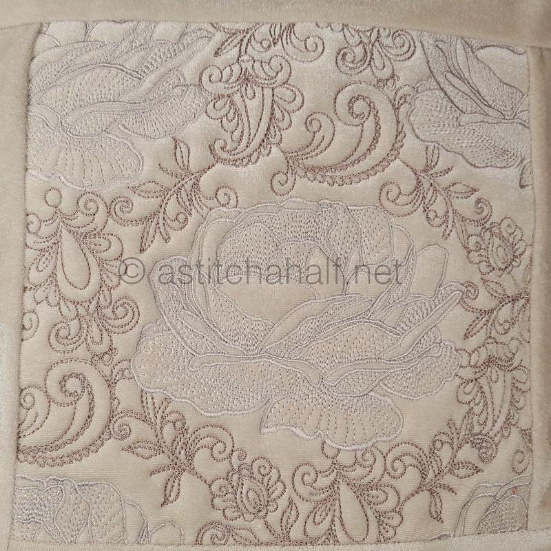 This Seamless pattern is a Repeating pattern, as shown in the Quilt we made (22" when finished using four 9" designs). You can make the quilt big or small, by simply stitching out more blocks in the hoop size you prefer, because the pattern joins beautifully with the pattern in the next block and the next block and the next block...Or stitch out only 1 Block to create a Beautiful Quilted Pillow.