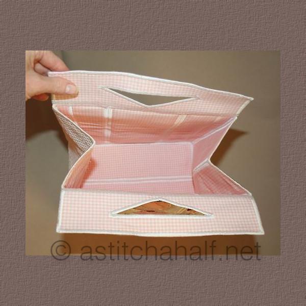 Size when complete: 5*7 Hoop Tote (small) - height = 8.76", breadth = 7.05", width = 4.20" ; 6*8 Hoop Tote (Medium) - height = 9.78", breadth = 7.86", width = 4.64" ; 6*10 Hoop Tote (Large) - height = 11.99", breadth = 9.59", width = 5.68"