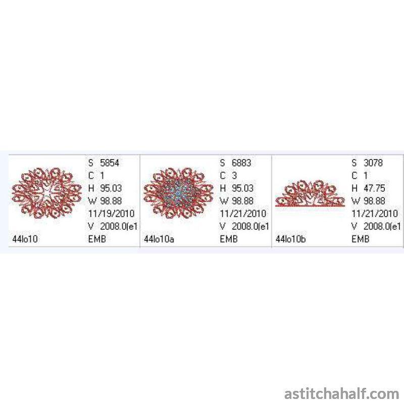 Embroider a continuous Border, a beautiful Snowflake Corner and Mylar Snowflake design.