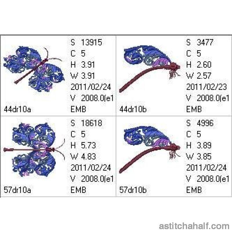 - 2 Unique Dragonfly Designs - (1 front view and 1 side view) for the 4*4 hoop