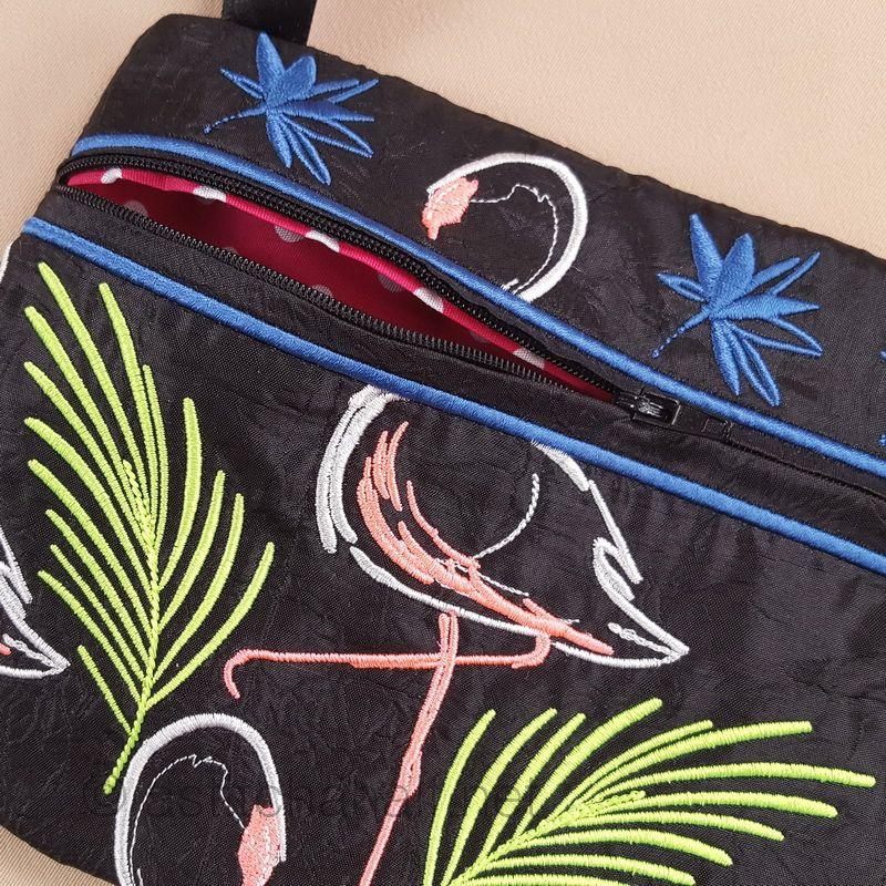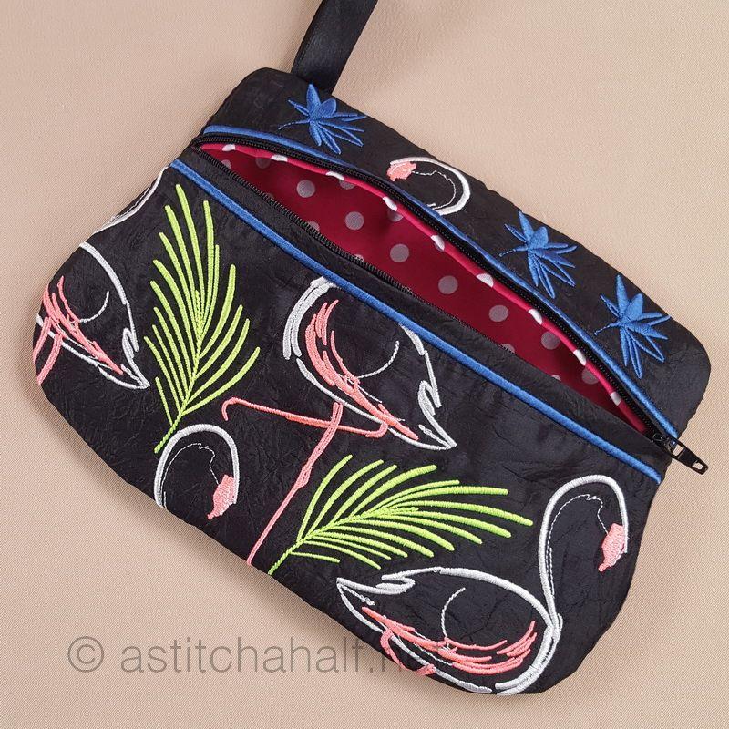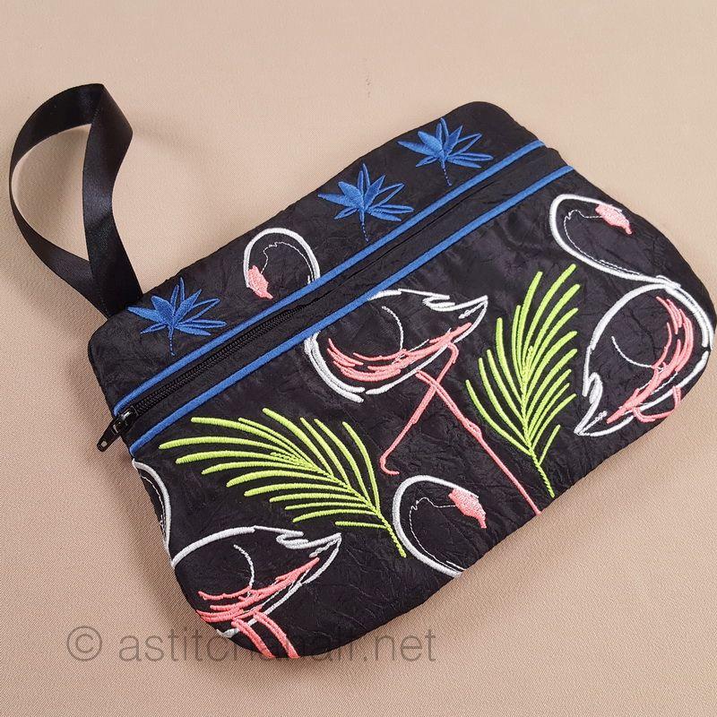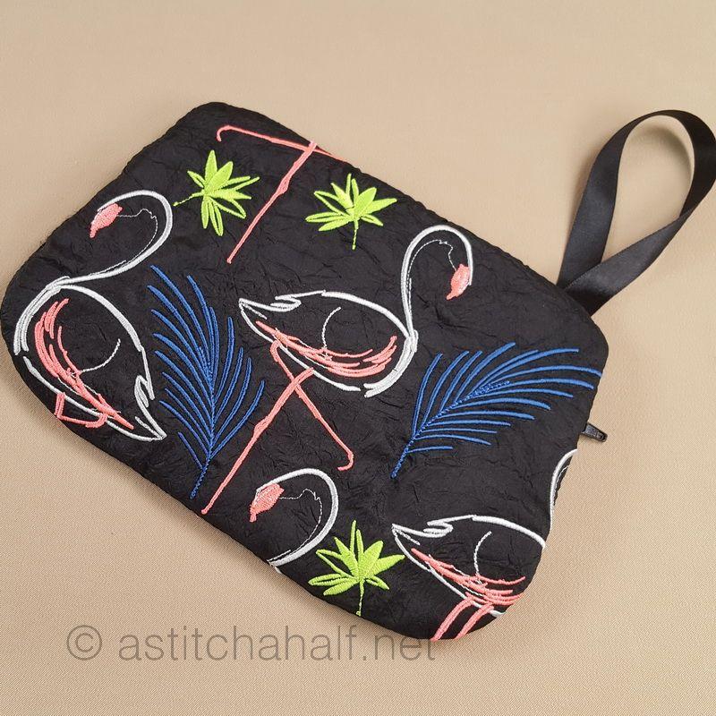 Midnight Flamingos ITH Wrist Purse