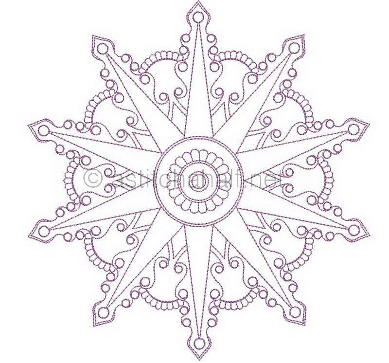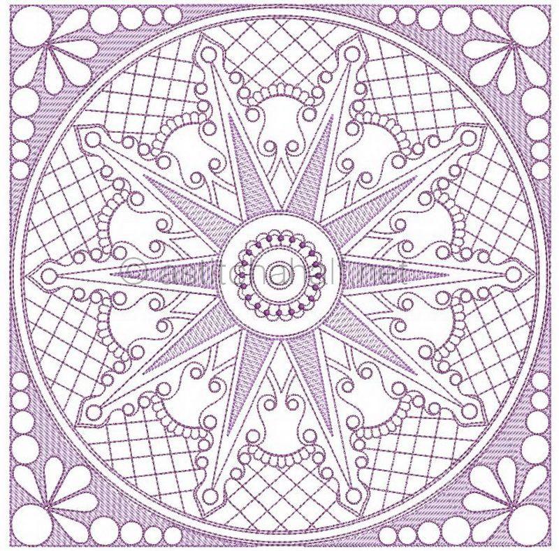Rays of stitches created this exquisite Midnight Sun Quilt Block Design. Use these designs in projects like a cross body bag, pillow sleeve, quilted blanket or embellish a napkin or pocket.