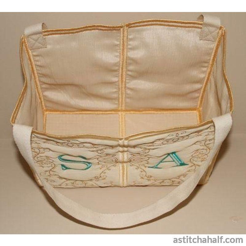 - Tote Bag completed in 6*10 hoop Height = 10" Width = 12" Breadth = 6" (photos displayed here are the Tote Bag completed in the 6*10 Hoop)