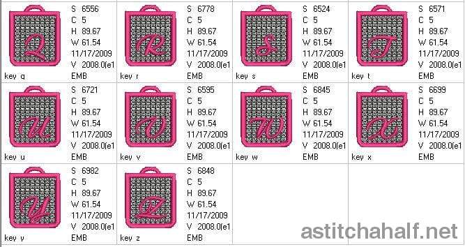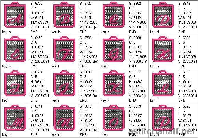 Monogram Key Tags: You receive the complete set of 26 applique key tags. Simply choose the letter you want and stitch it out in a jiffy.