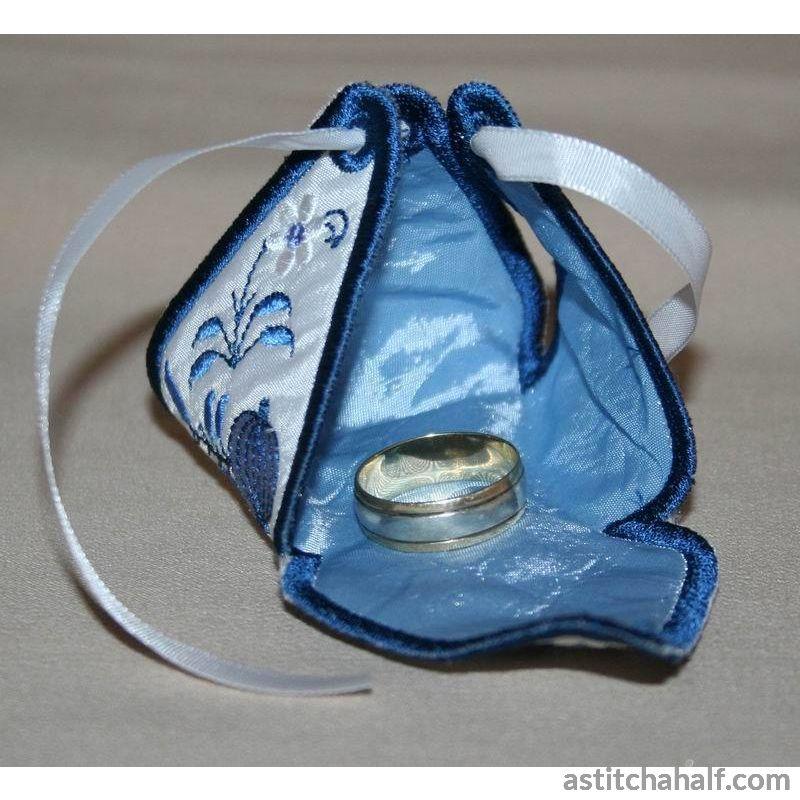 Need a gift quickly...or need to make a few favors? This all-in-the-hoop pocket is ideal to fill with a few treats or even use as a ring bearer box! Muster Pocket ideal for small gifts.