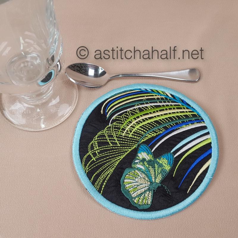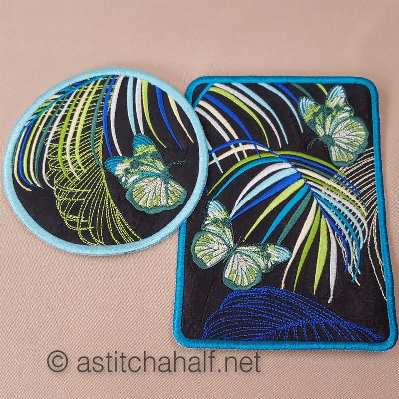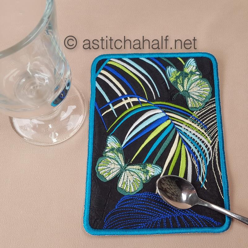The Neotropical Mug Rug and Coaster set is smaller than a place mat but ideal for your tea and a snack.