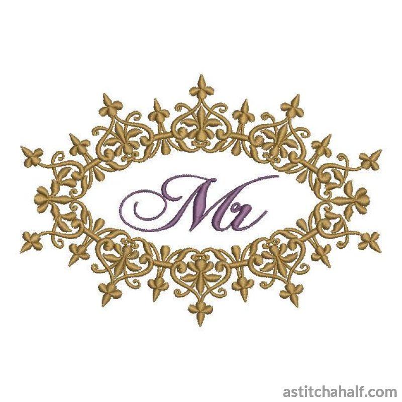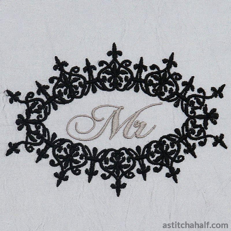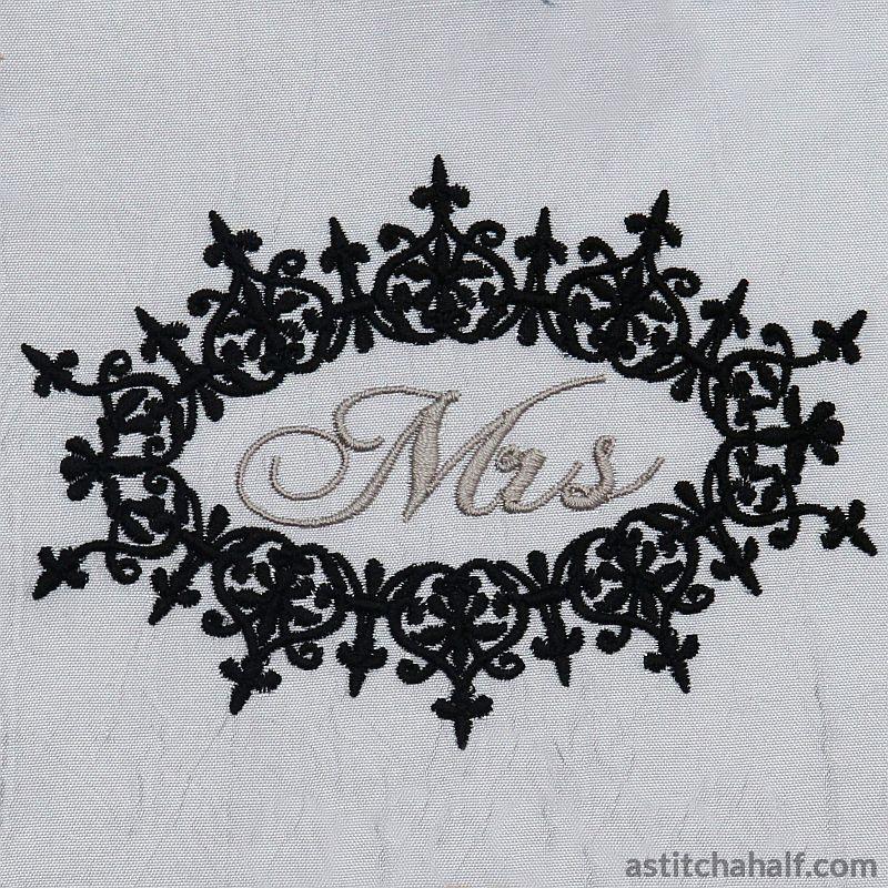 Personalize an apron, bag or towel with this elegant yet simple wreath design. Only 2 color stops.