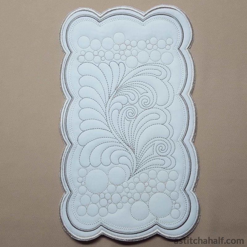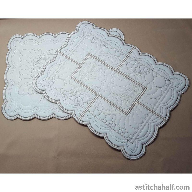 - PLACE MAT 2, Size of design files = 5.86" x 7.67" and 3.64" x 7.75", Size when complete = 11" x 15"