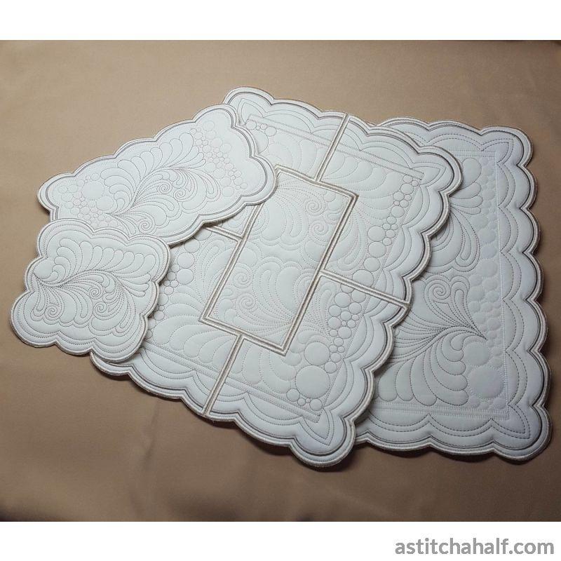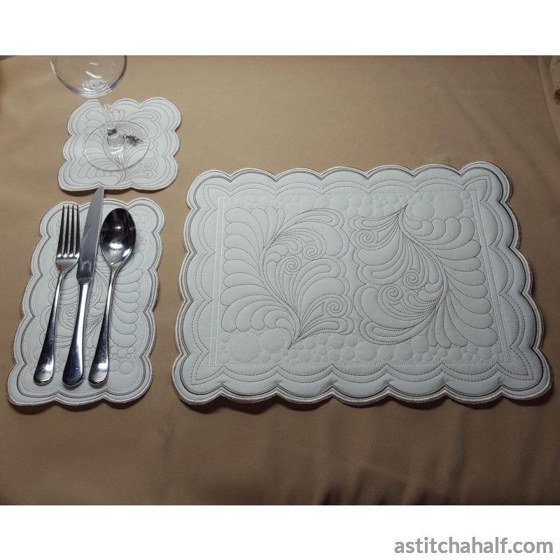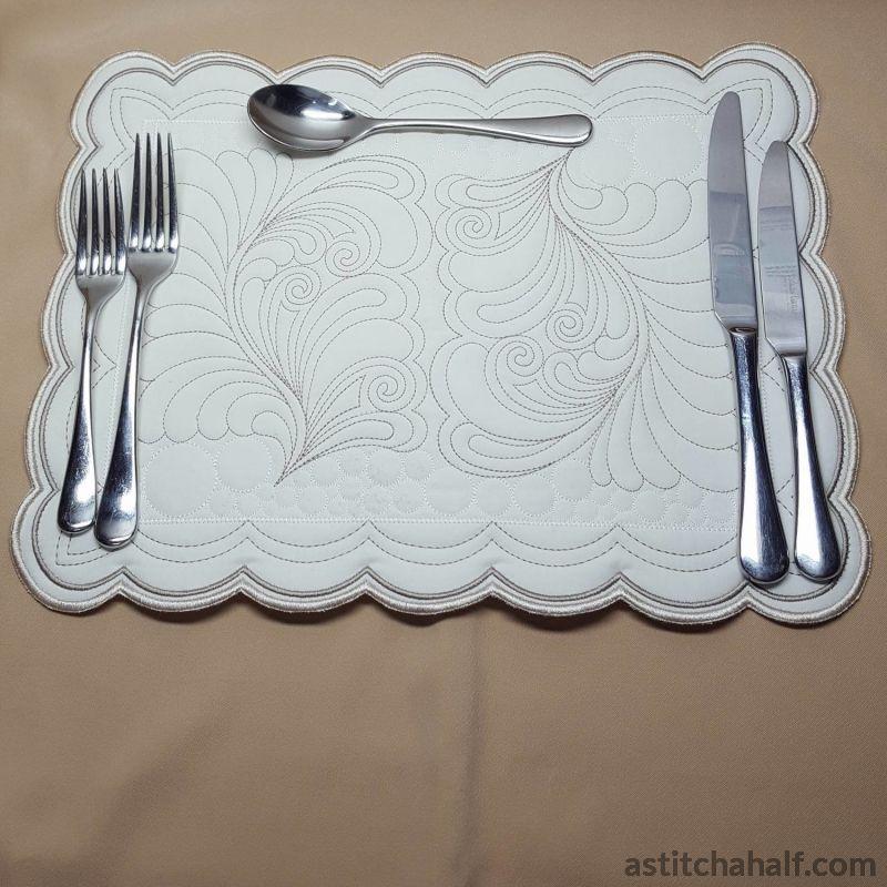 - PLACE MAT 1, Size 11.70" x 15.28", Stitch Count = 36,660