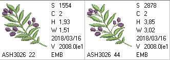 - 2*2 Hoop x 1 (1.93" x 1.51") stitch count = 1554