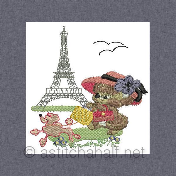 Olivia Fuzzy in Paris visiting the Eiffel Tower after a busy morning shopping.