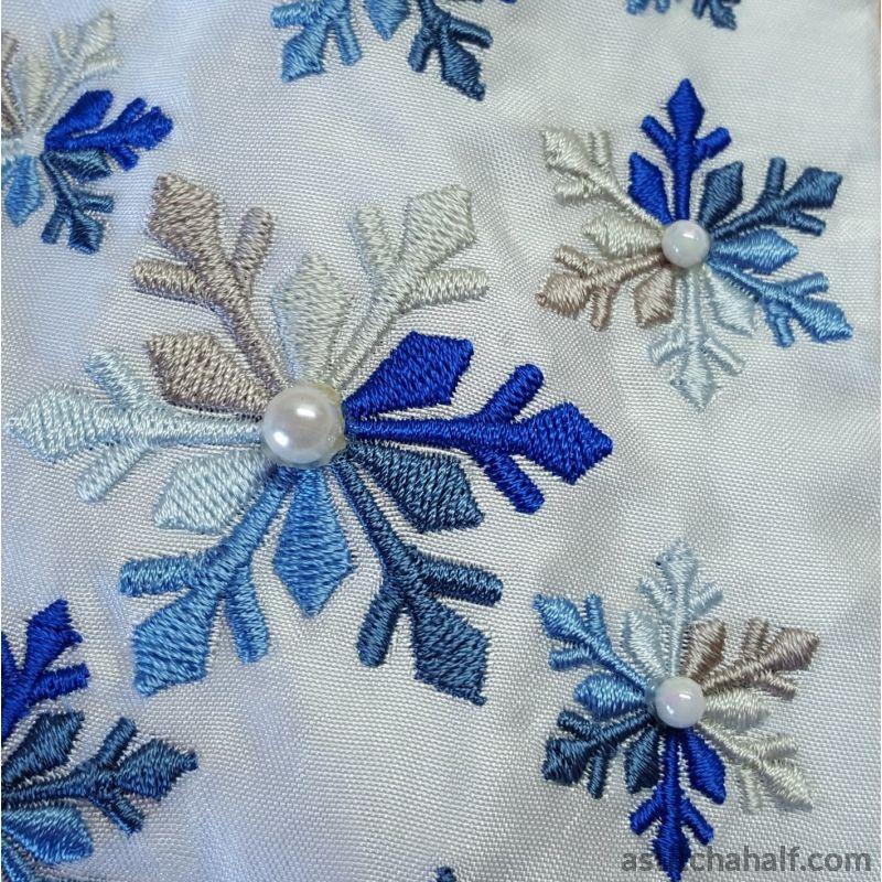 Meet your multi use Ombre Snowflake Bag With ITH Zipper. You can also use it as a pin cushion, a cosmetic bag, a mobile phone bag or a little pillow. So many choices with this bag. This SUPER EASY fun project needs only 2 hoopings! No sewing required! Have a look at out FREE PHOTO TUTORIAL on this project. Click on the Tutorials TAB at the top of the webpage. Then click on PHOTO TUTORIALS on the website. Full photo tutorial also included in your download on purchase.
