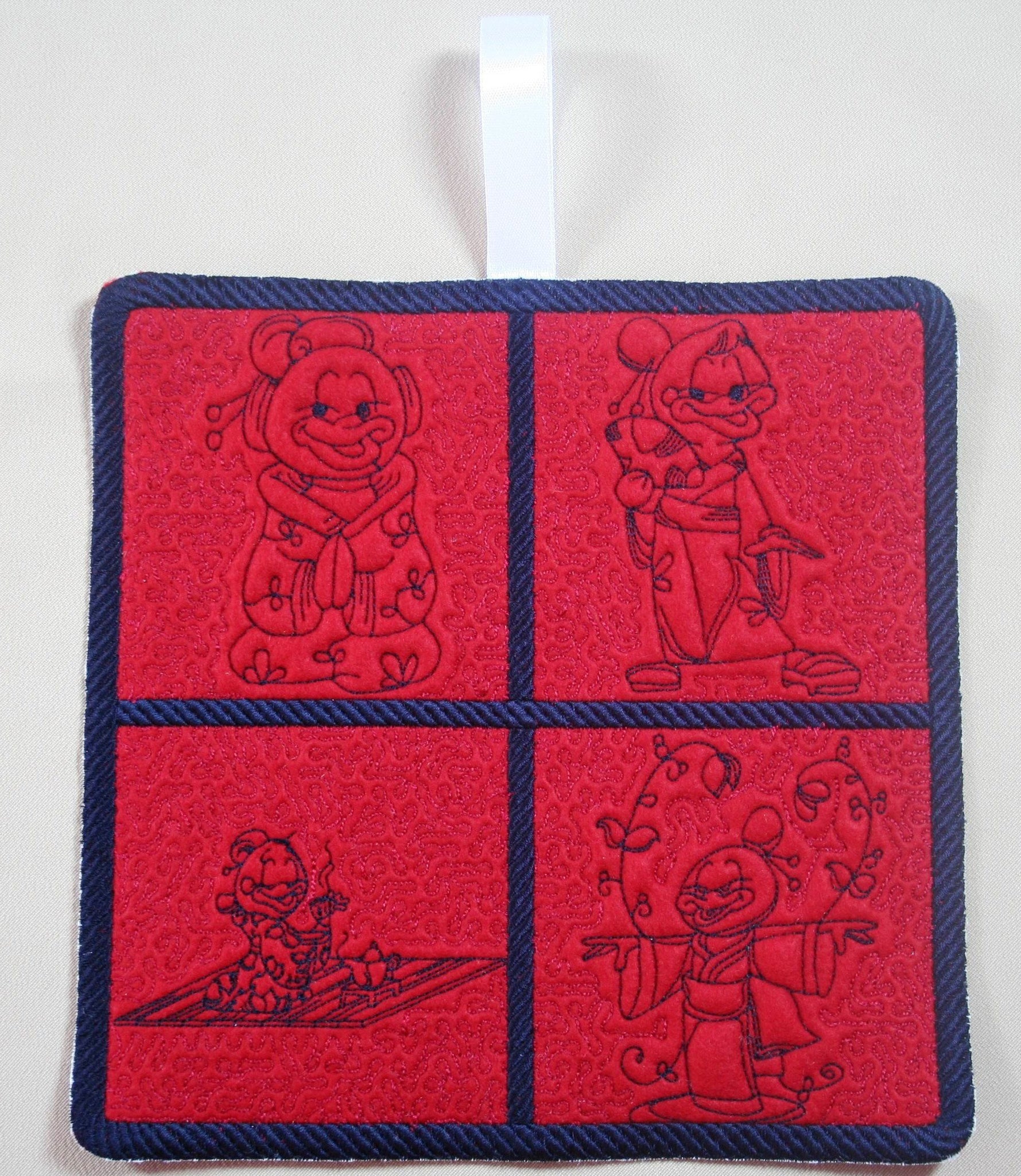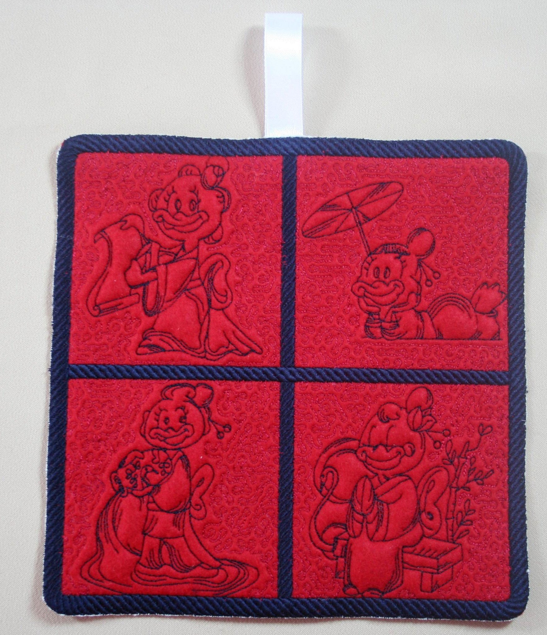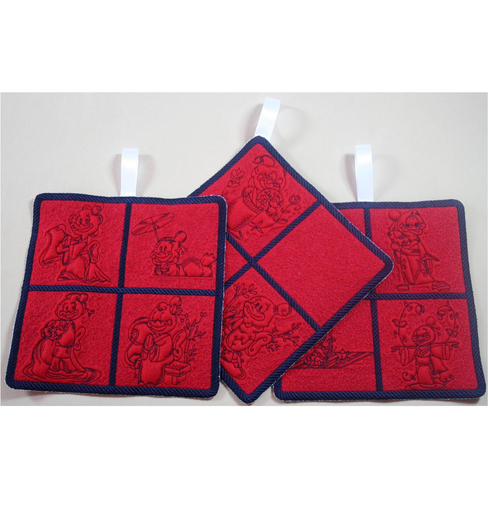 Trapunto designs, also called raised embroidery. Create beautiful projects with these designs. We made tea tray cloths, pot holders, book covers, coasters, placemats etc.