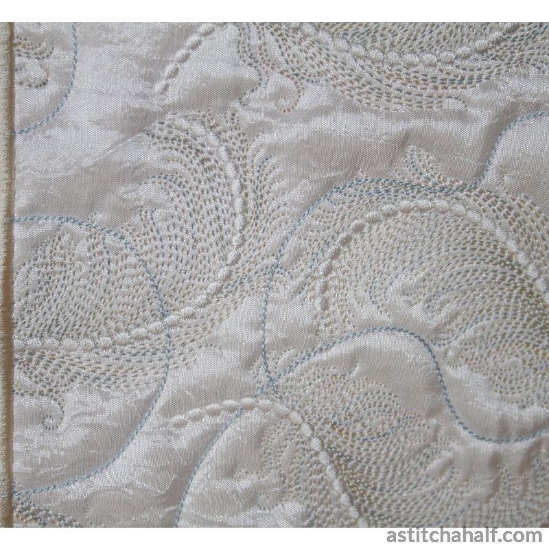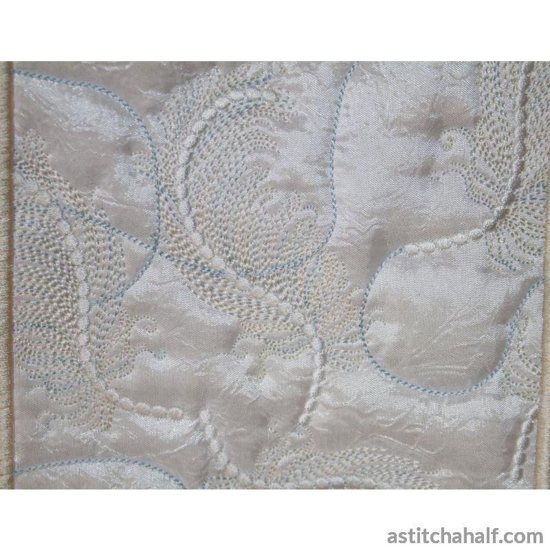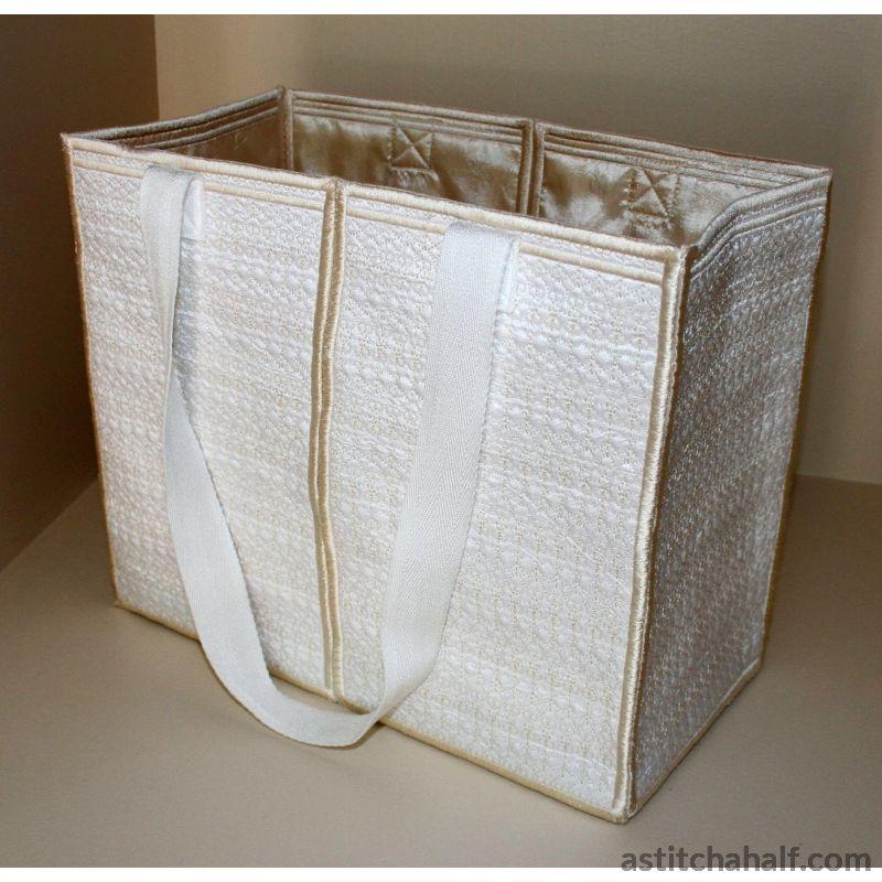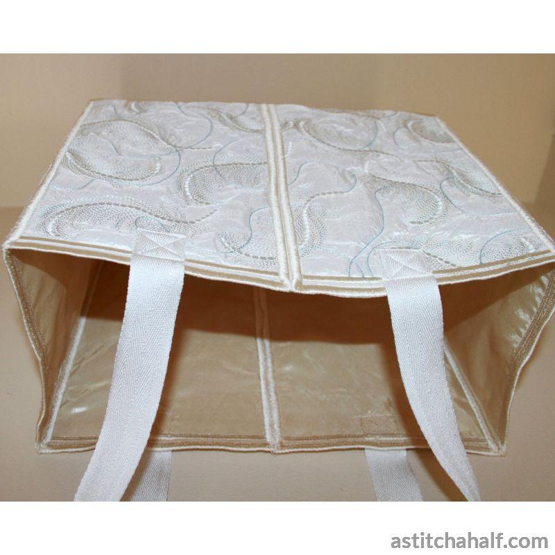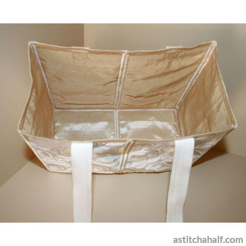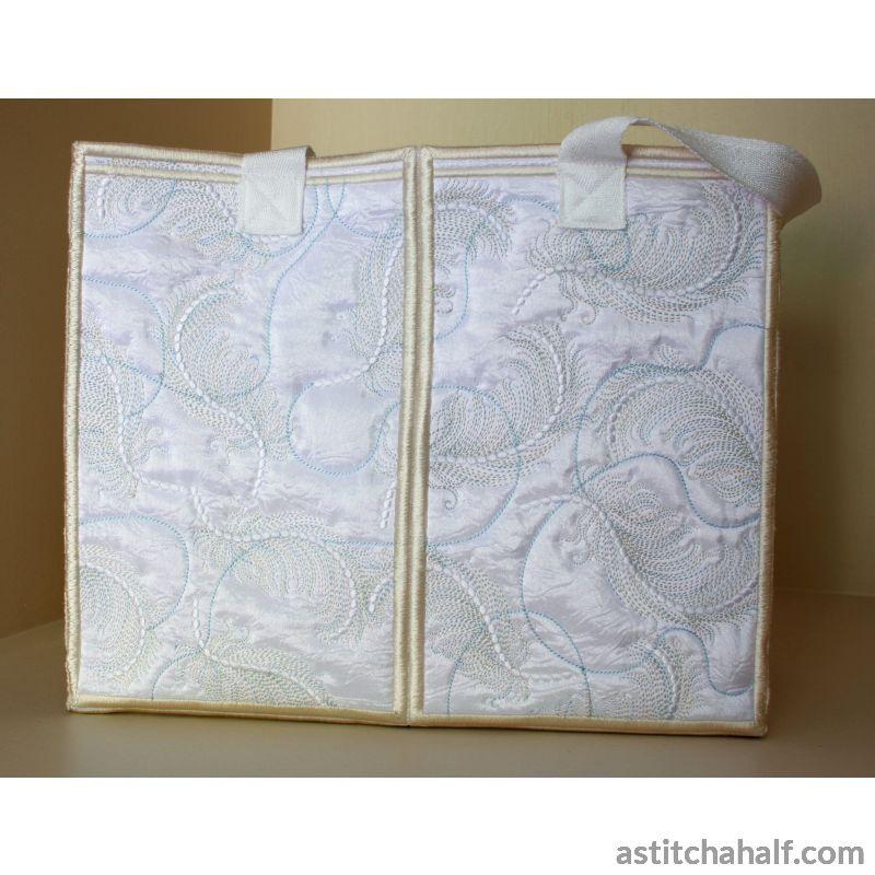 Embroider a beautiful Pearly White Feathery Light Tote Bag. This beautiful PEARLS and FEATHERS can be stitched in Bright or Pale tones. Complete Color Chart and Instructions included.