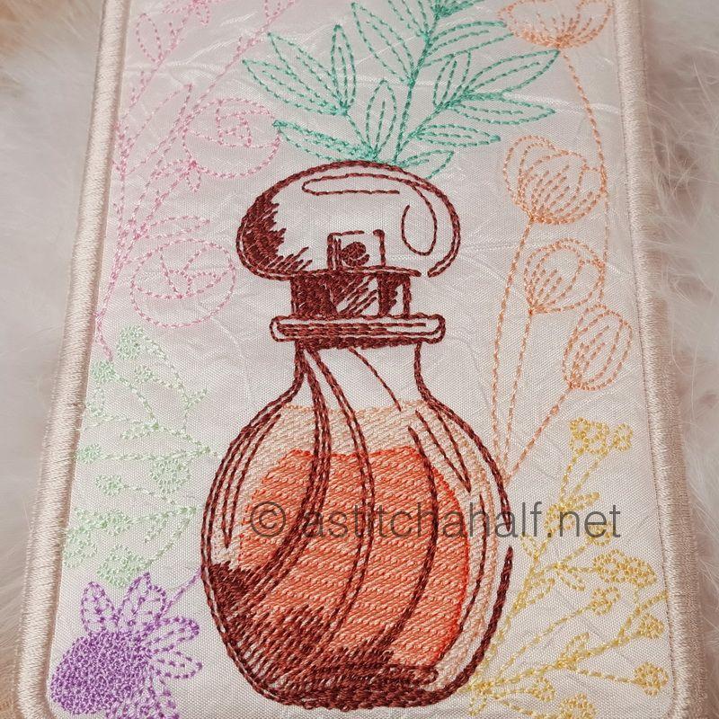 Pensant à vous Eau De Parfum Eyeglass Case is the ideal, chic eyeglass case that fits easily into your purse, tote bag or just in your pocket. It easily fits sunglasses or reading glasses. This SUPER EASY fun project is completely done ALL IN THE HOOP! No sewing required!