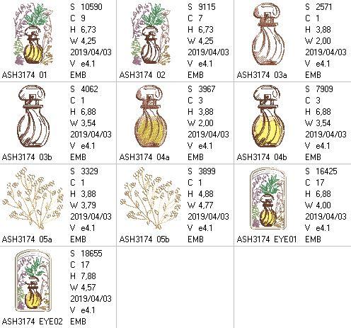 - Designs 3 x 4*4 hoop", Stitch Count 1310 - 5278