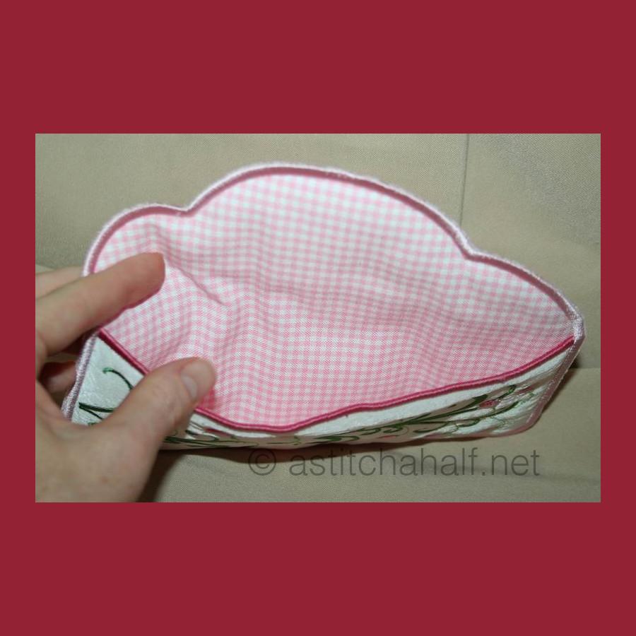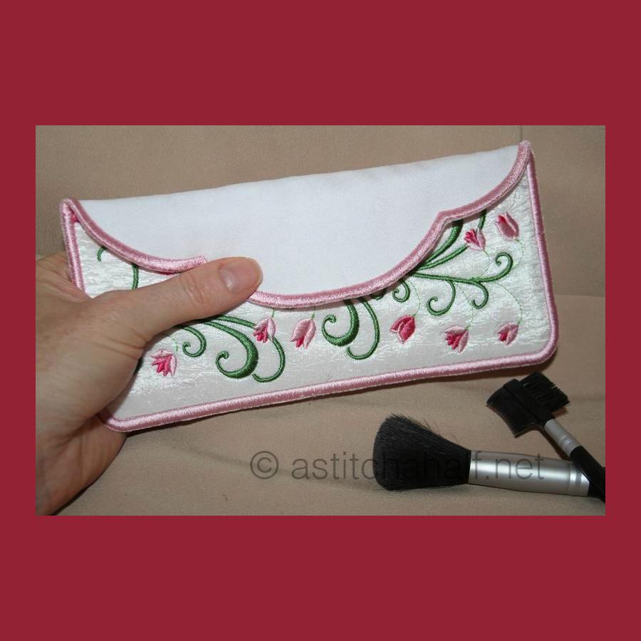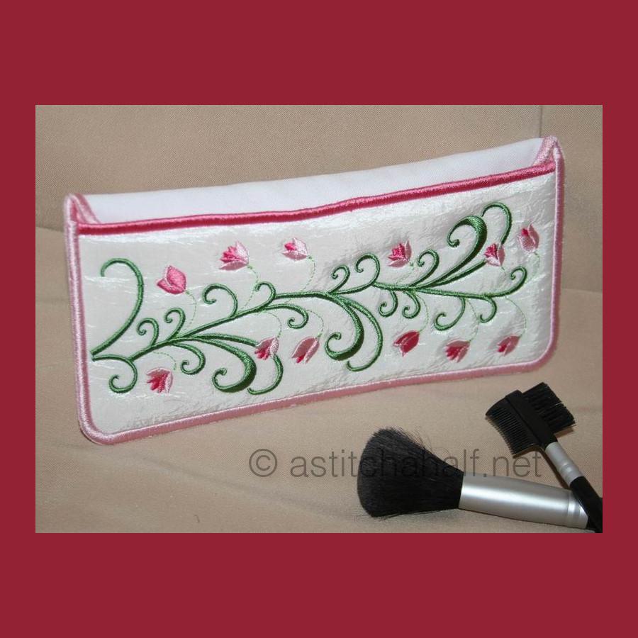 An all in the hoop Pink Sprinkles Case that can also be used as a cosmetic bag, a pencil case, purse etc
