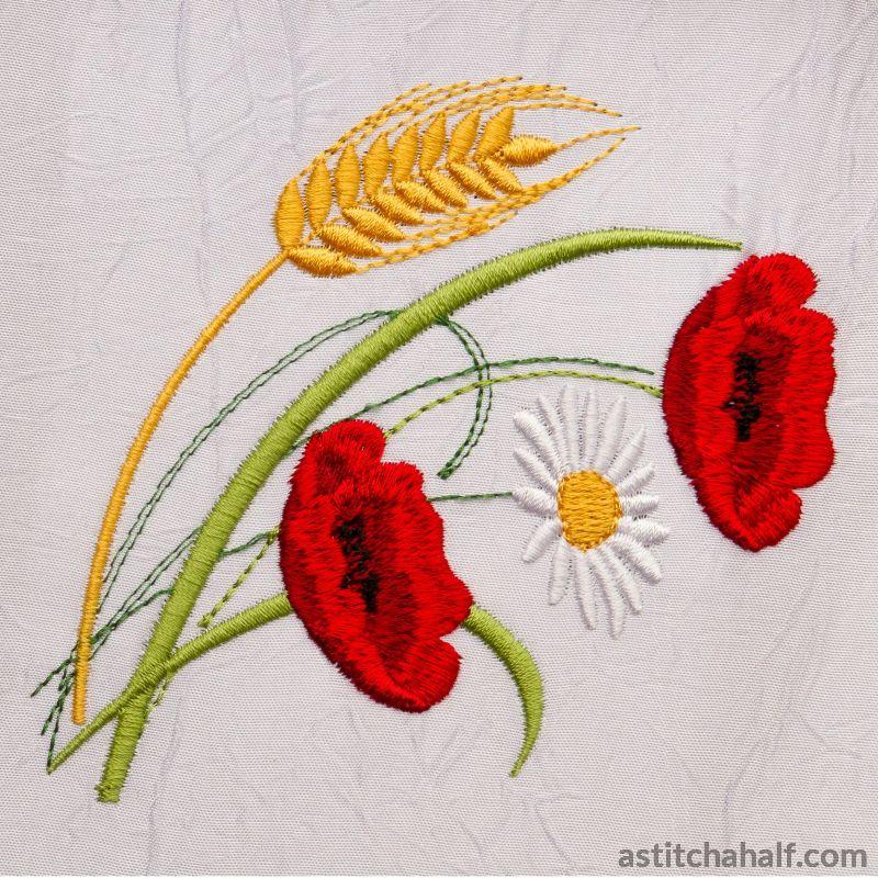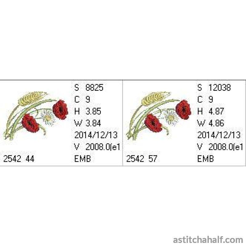 Bright Red Pretty Poppies are Always a Winner. Stitch this Beautiful Design on a variety of colored fabric as these bright Red Flowers stands out anywhere! E.g you can use it on a table runner.