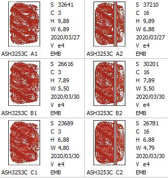 Stitches: A= 19,672 – 24,980 B= 17,081 – 21,047 C= 15,476 – 18,831