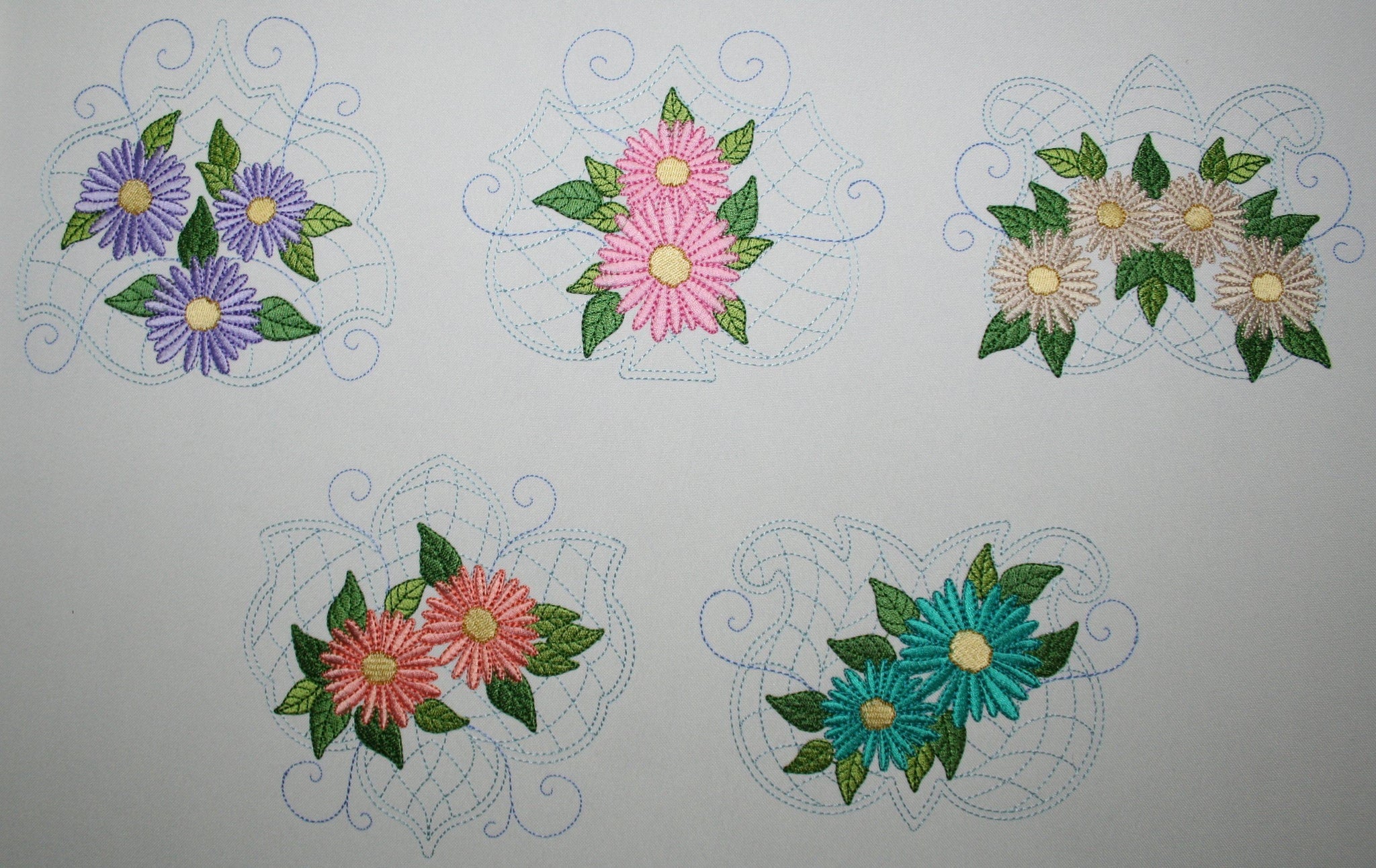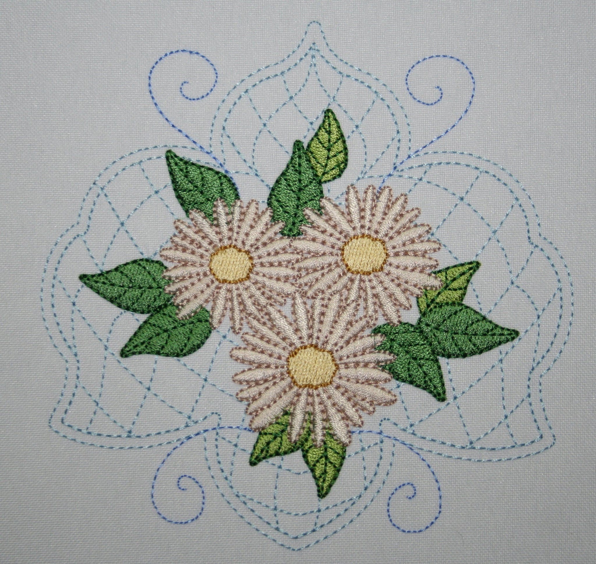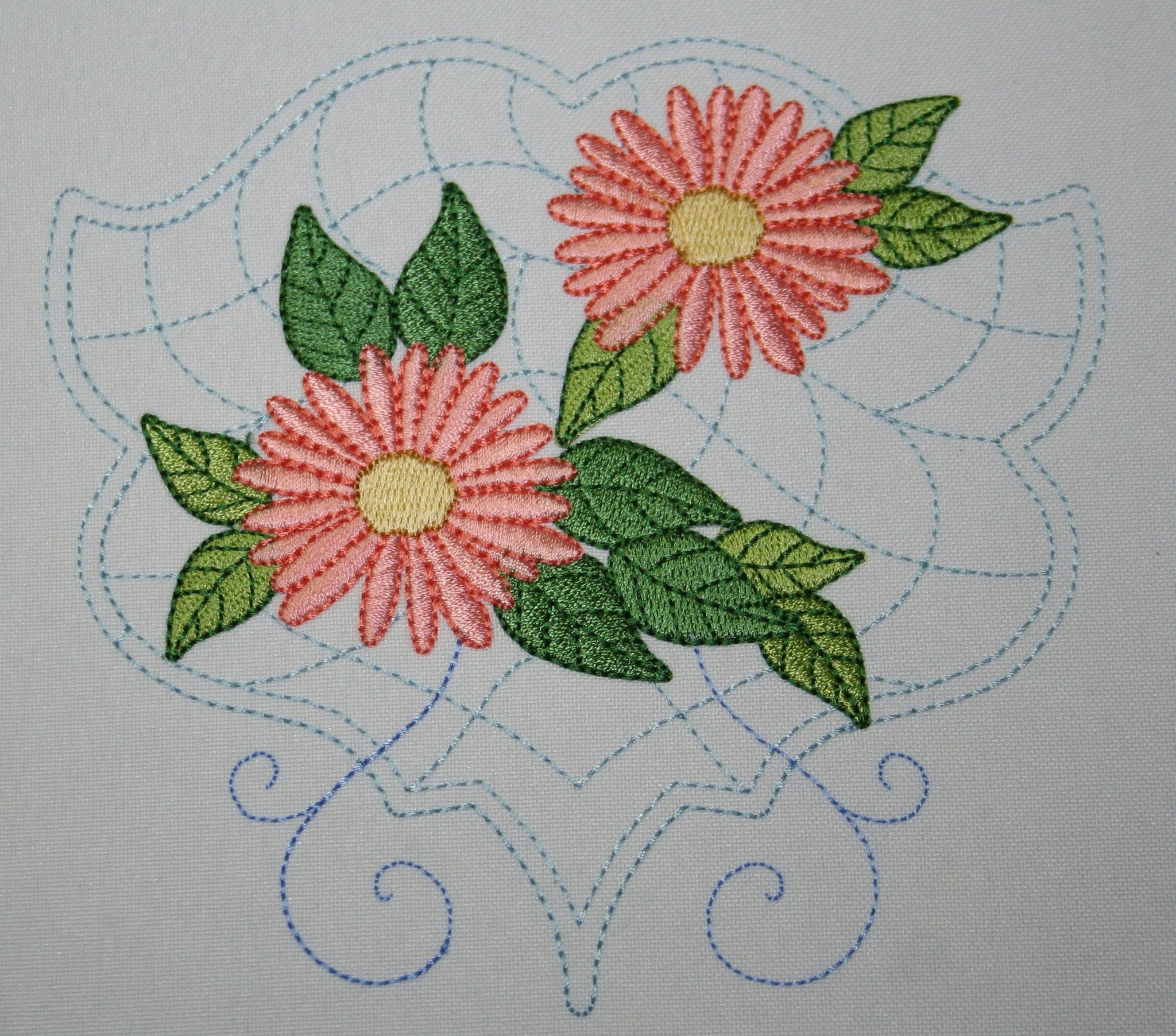 Embroider these beautiful Daisy and Lace designs on a quilted blanket, place mat, potholder or embellish your favorite garment