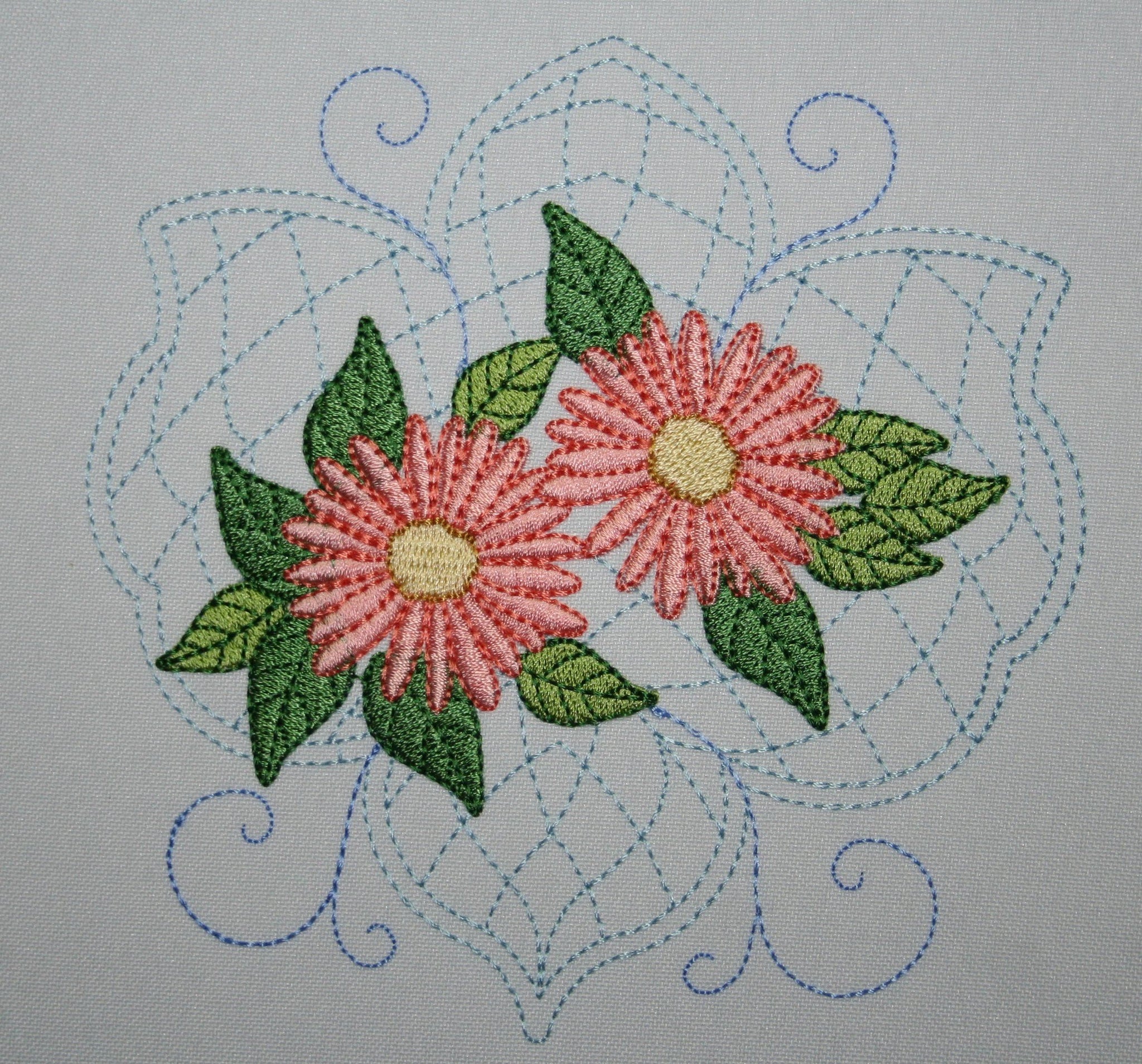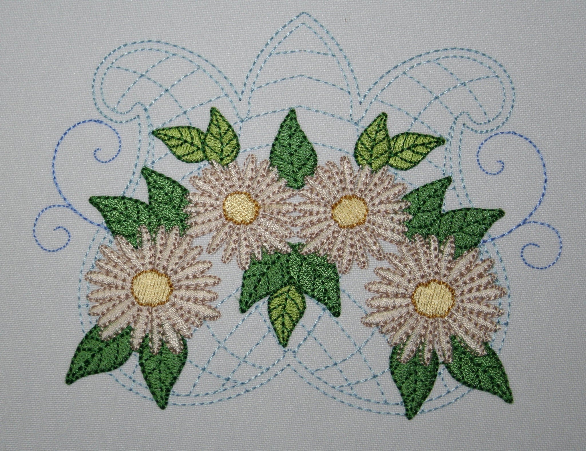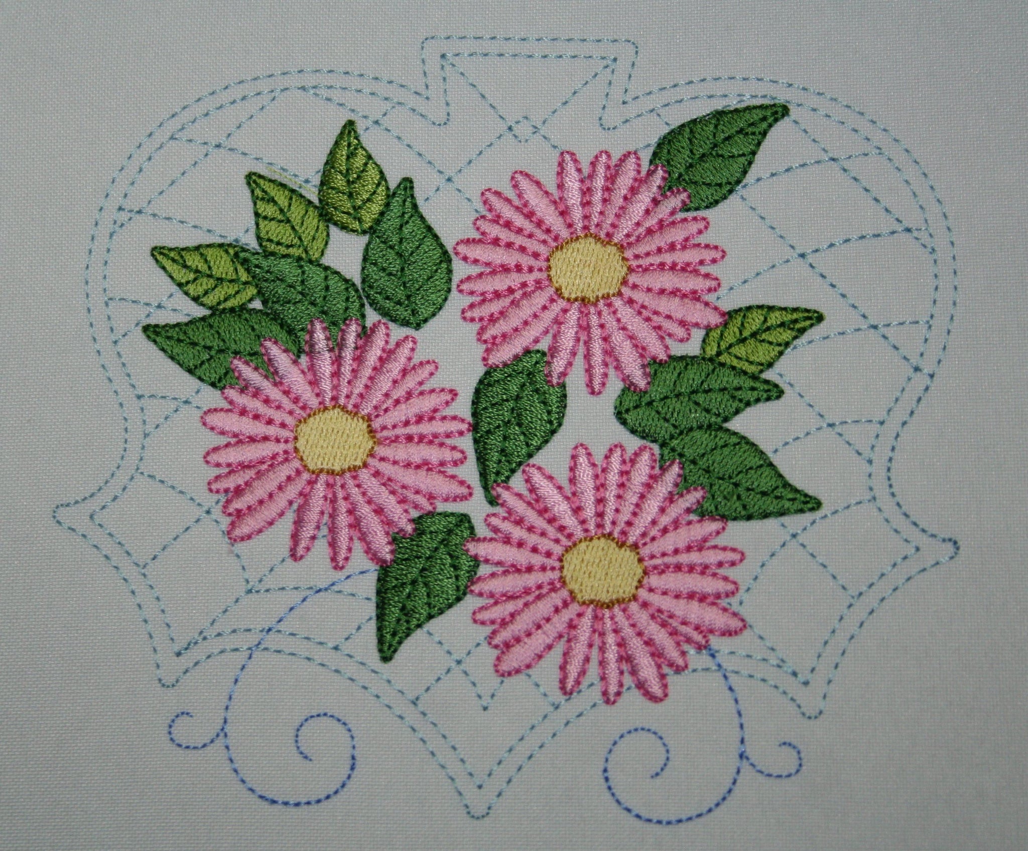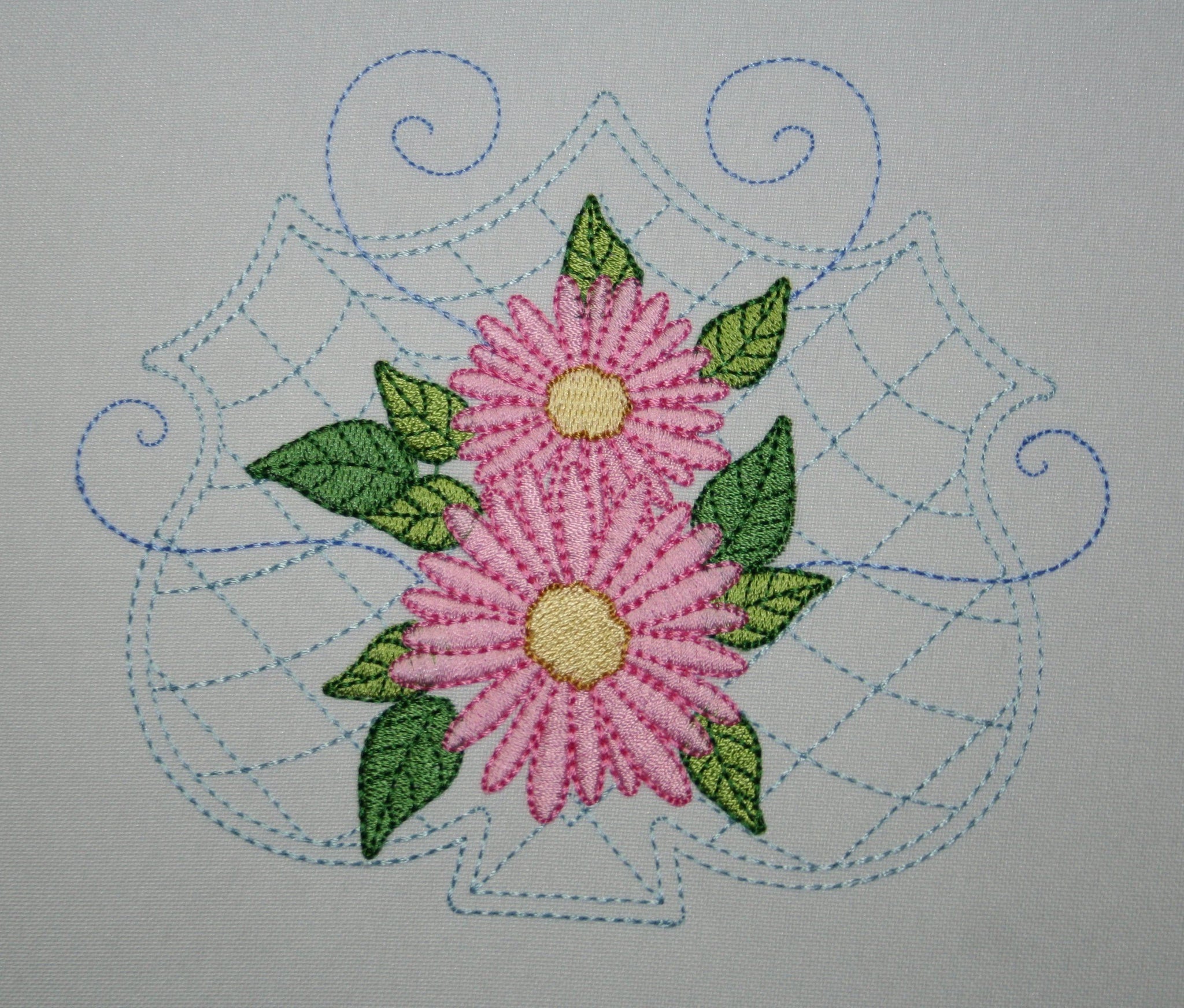 Embroider these beautiful Daisy and Lace designs on a quilted blanket, place mat, potholder or embellish your favorite garment