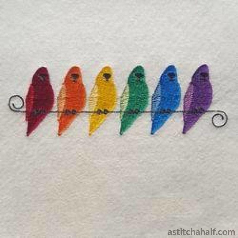 You have a range of 5 multi-colored budgies on a line. Decide how many colors you would like in your Rainbow Budgies project. Fun, Funky and so colorful.