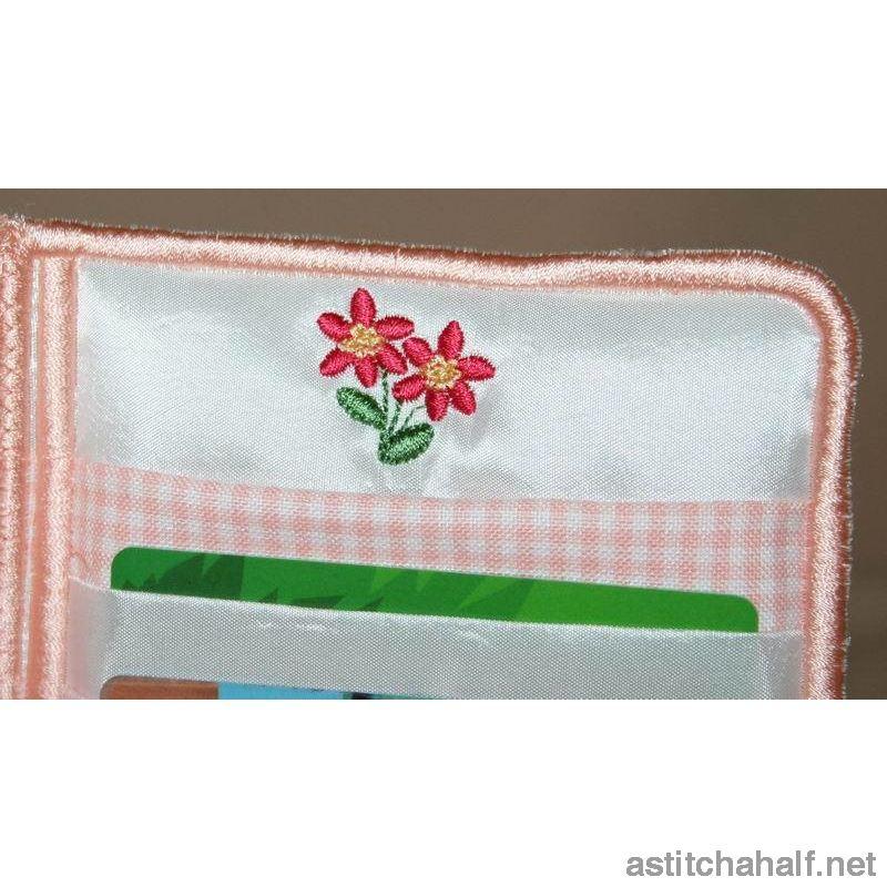 An All in the Hoop Project where Little Miss Bonnet is spending some leisure time, reading her book in the garden. Keep your VISA cards, coins and dollars in this stylish wallet. Complete instruction file included.