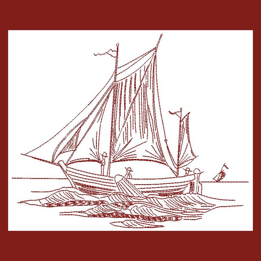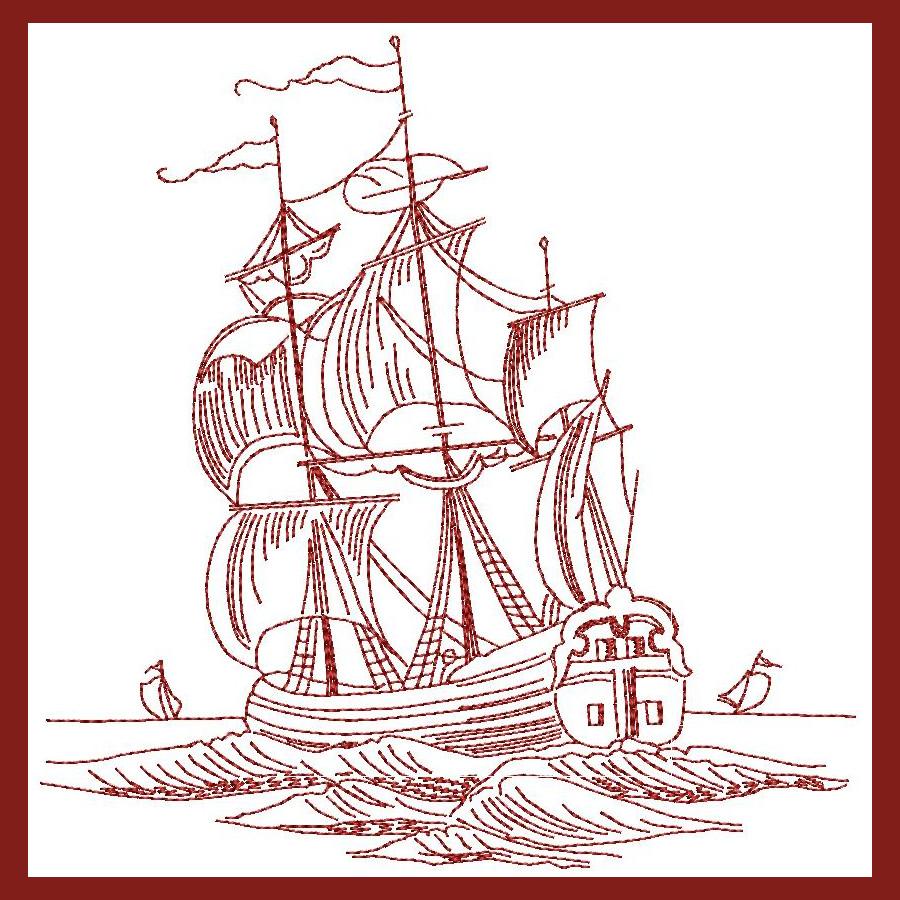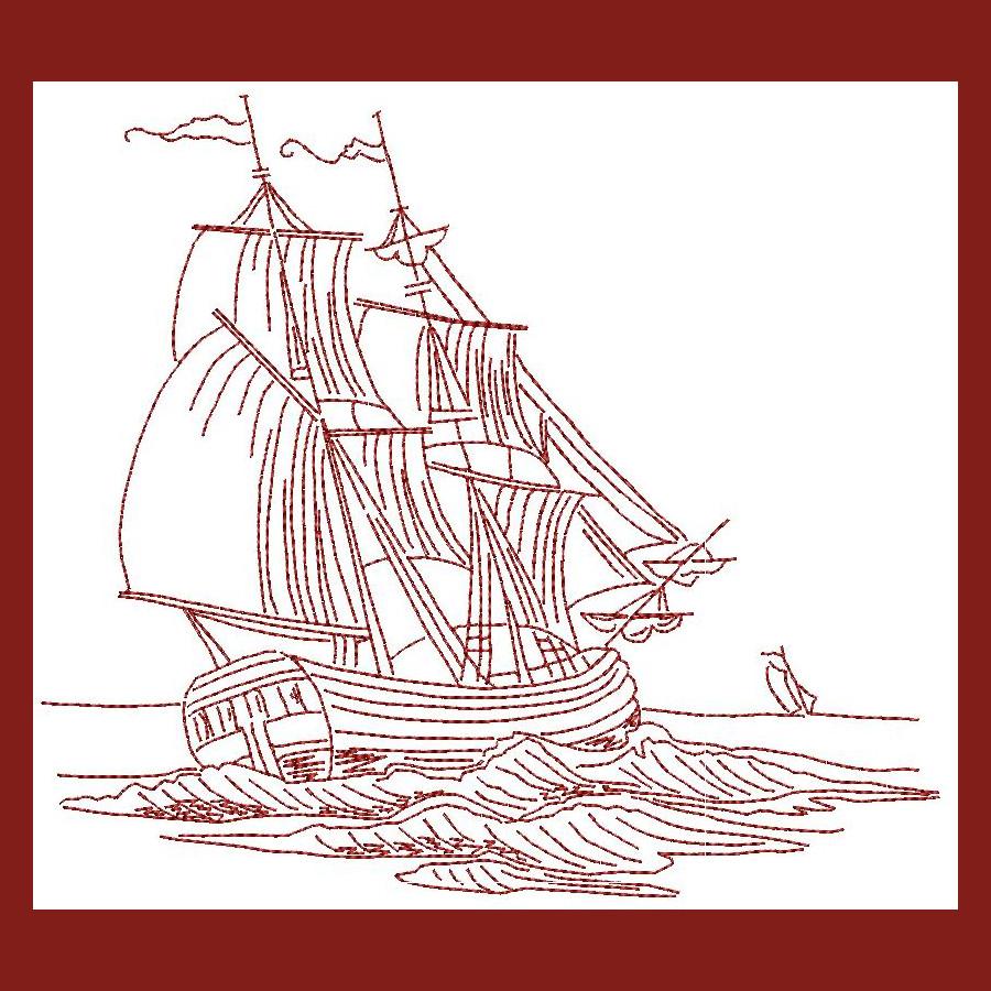 Use this Redwork Ships and Trailers Combo to create a beautiful, timeless project on dish cloths, towels, napkins etc.