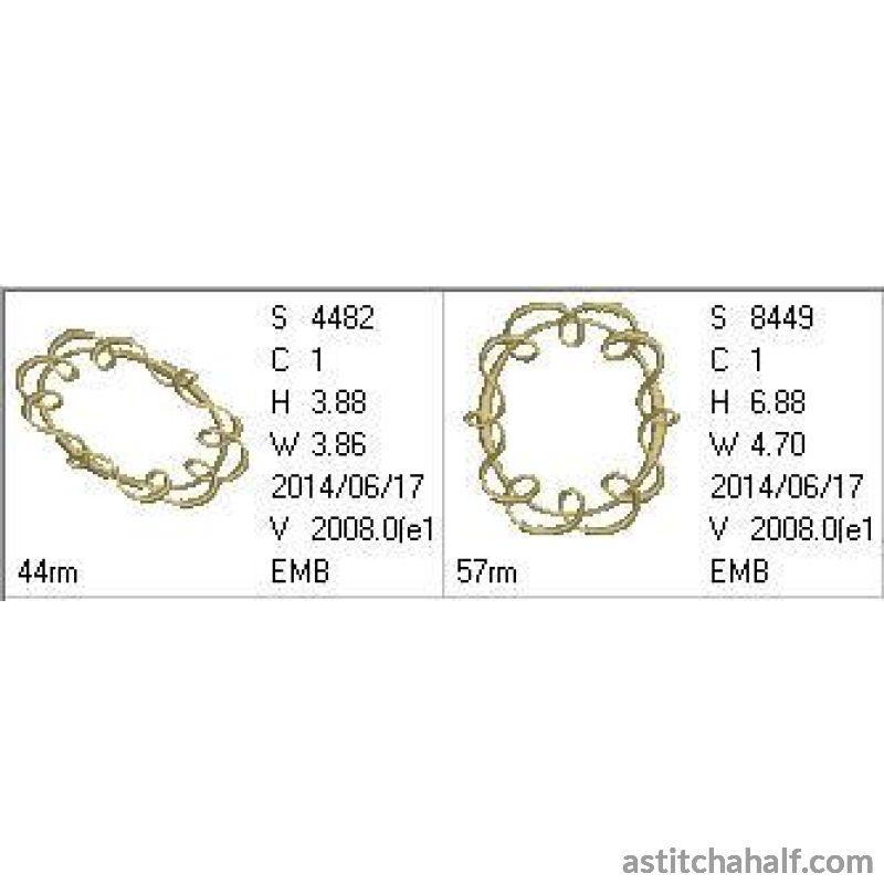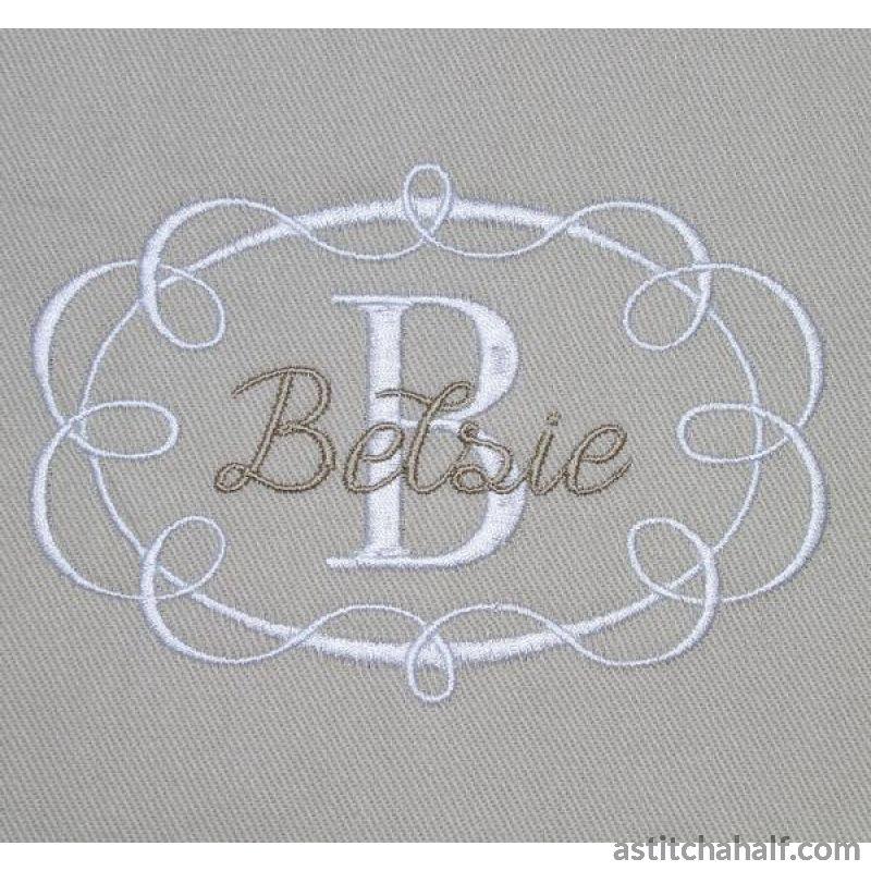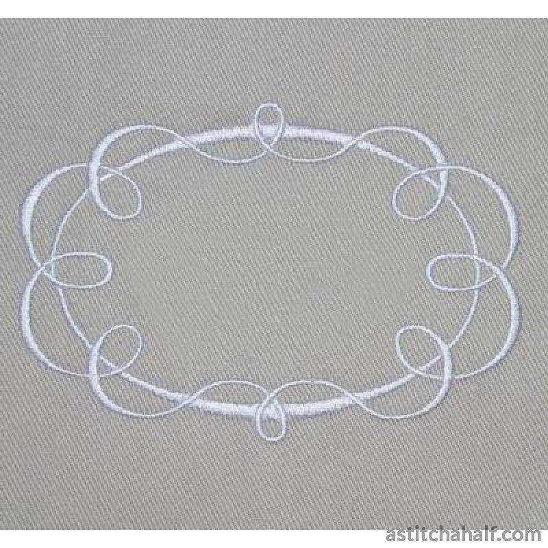 Personalize an apron, bag or towel with this elegant yet simple ribbon frame. Simply add your lettering. Only 1 color stop. (Lettering not included)
