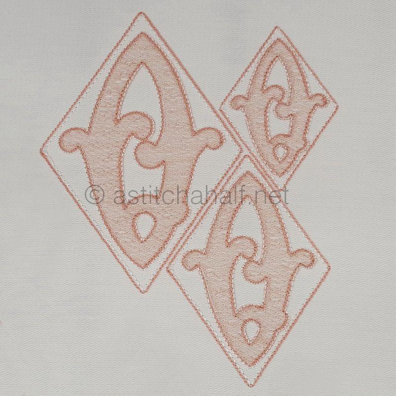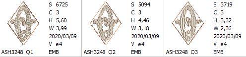 Hoop: 4*4 hoop, 5*7 hoopDesigns: 3 designs includedSize: 2.26” x 3.19” to 3.87” x 5.47”Stitches: 3719 – 6725