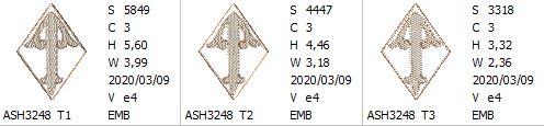 Hoop: 4*4 hoop, 5*7 hoopDesigns: 3 designs includedSize: 2.26” x 3.19” to 3.87” x 5.47”Stitches: 3318 – 5849