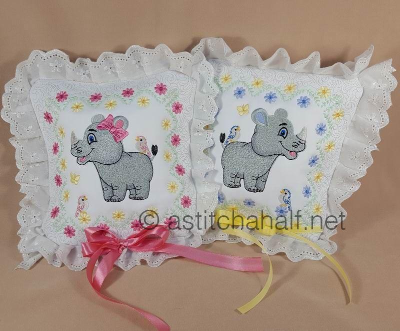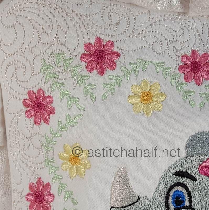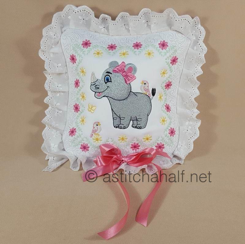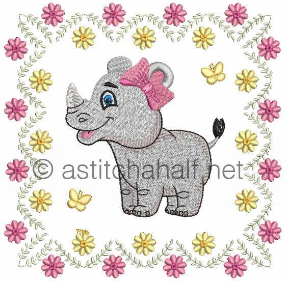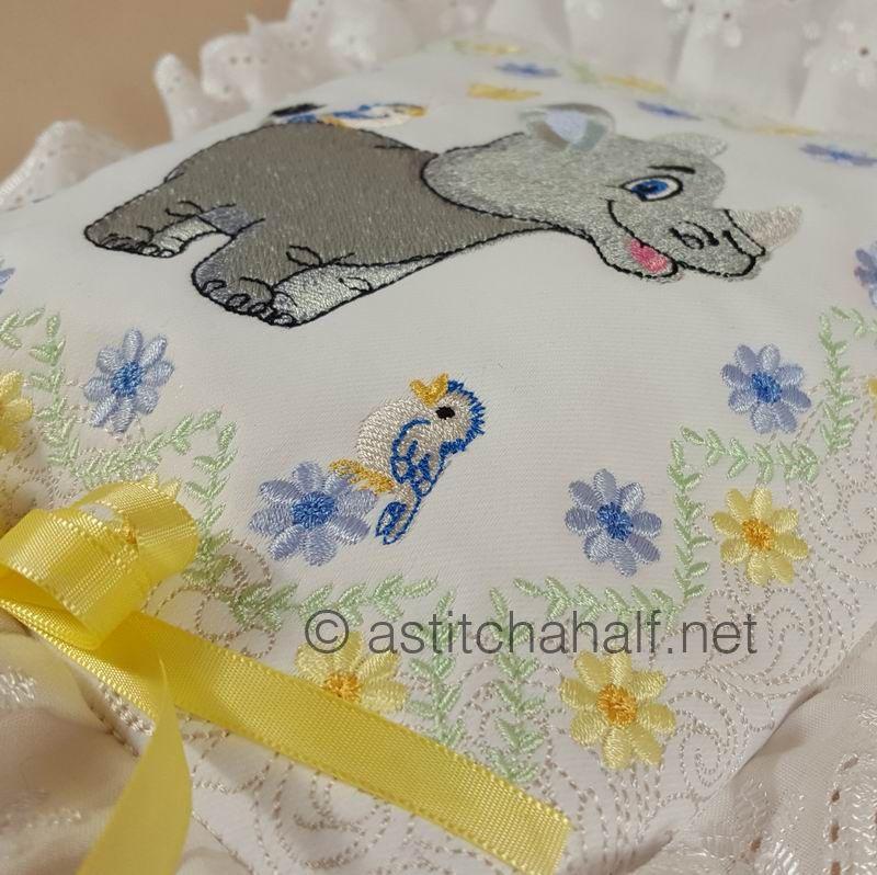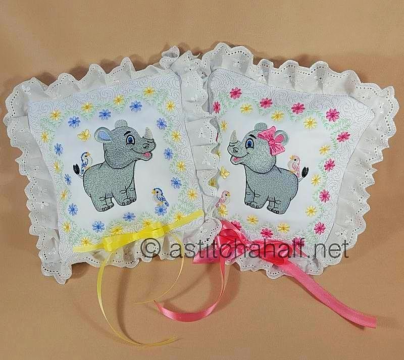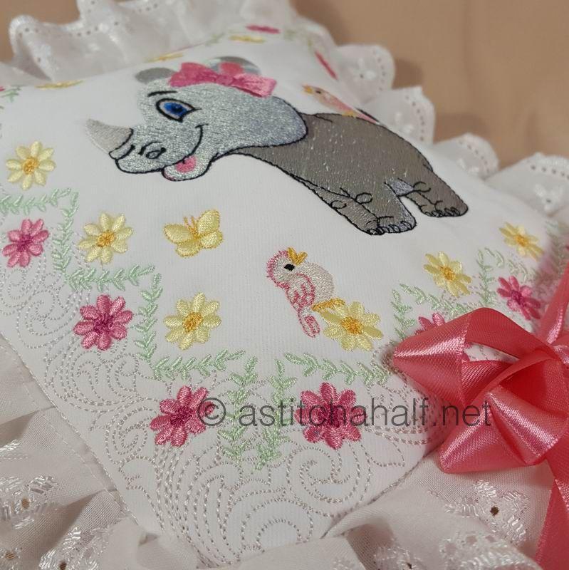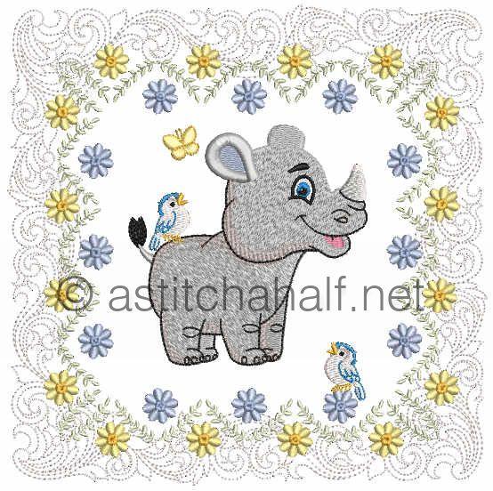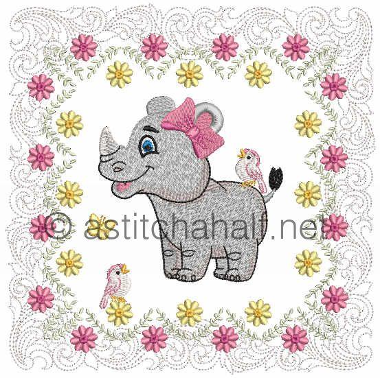 The Rodney and Riley Baby Rhino Quilt Combo enables you to embroidery a variety of matching projects with the same theme. These cute designs are unique and timeless, as it can be used to decorate your baby room, and the roses and daisies are perfect for a show pillow, aprons or simply a continuous border of your favorite tablecloth. A beautiful addition to your embroidery collection.